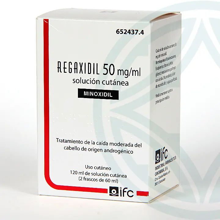 - Regaxidil 50 mg/ml solución cutánea 120 ml: conveniente para 1-2 meses de tratamiento.