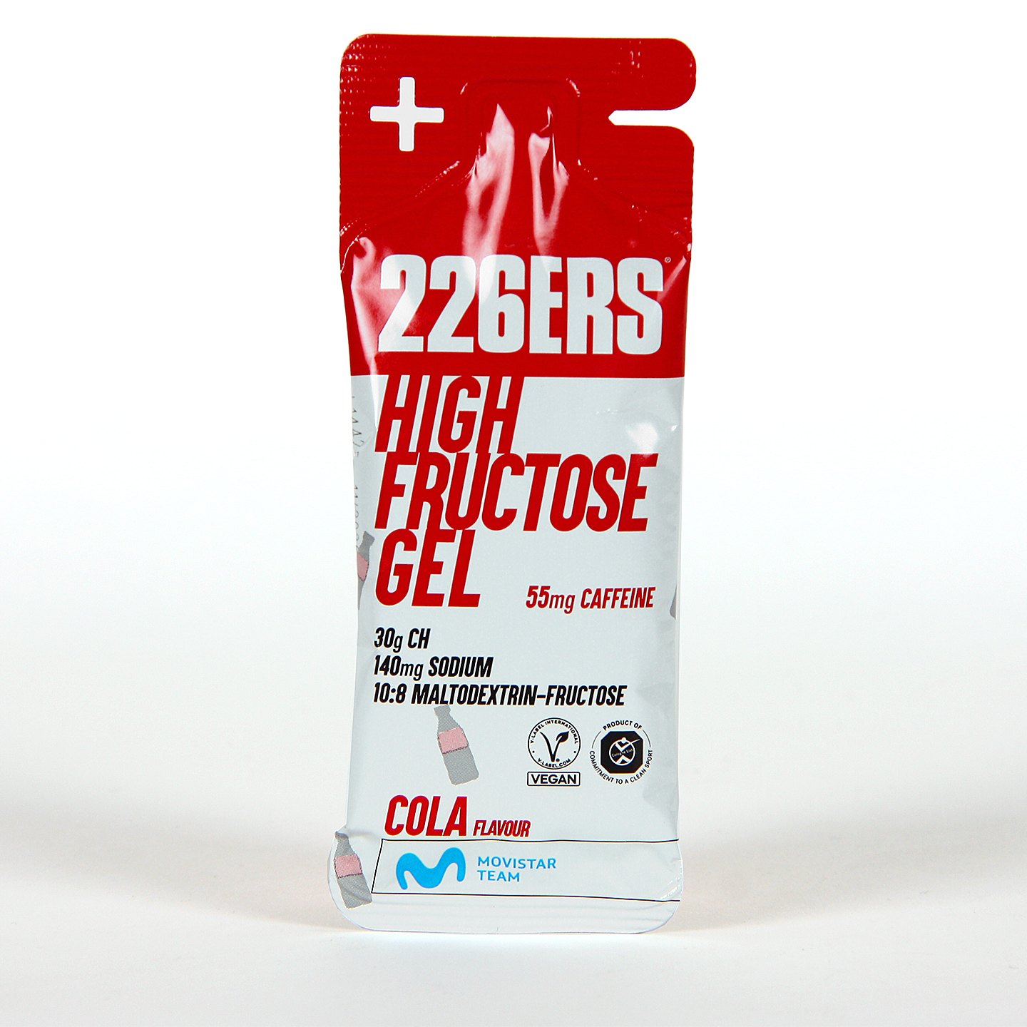 226ERS High Fructose Gel XS Cafeína Cola es un gel energético formulado con diferentes fuentes de hidratos de carbono. Aporta 30g de Hidratos de Carbono que provienen de la Maltodextrina un polisacárido de índice glucémico alto que libera energía inmediata y Fructosa un monosacárido de absorción de energía gradual, constante y progresiva. La proporción de Maltodextrina y Fructosa es 10:8. Además, aporta 140mg de sodio que ayuda a prevenir los calambres musculares y contribuye a una hidratación óptima y 55mg de Cafeína que ayuda a mejorar el rendimiento deportivo