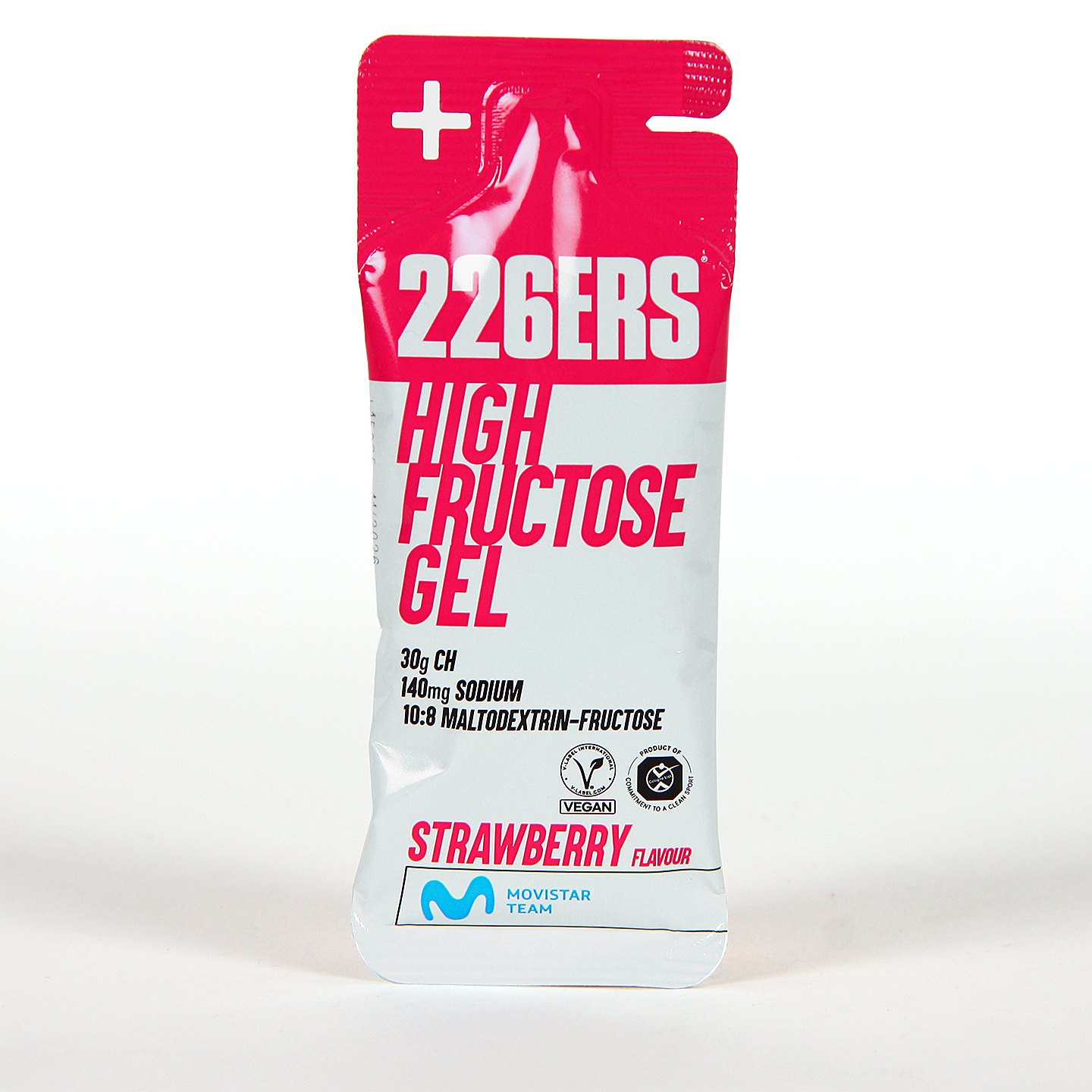 226ERS High Fructose Gel XS Fresa es un gel energético formulado con diferentes fuentes de hidratos de carbono. Aporta 30g de Hidratos de Carbono que provienen de la Maltodextrina un polisacárido de índice glucémico alto que libera energía inmediata y Fructosa un monosacárido de absorción de energía gradual, constante y progresiva. La proporción de Maltodextrina y Fructosa es 10:8. Además, aporta 140mg de sodio que ayuda a prevenir los calambres musculares y contribuye a una hidratación óptima.