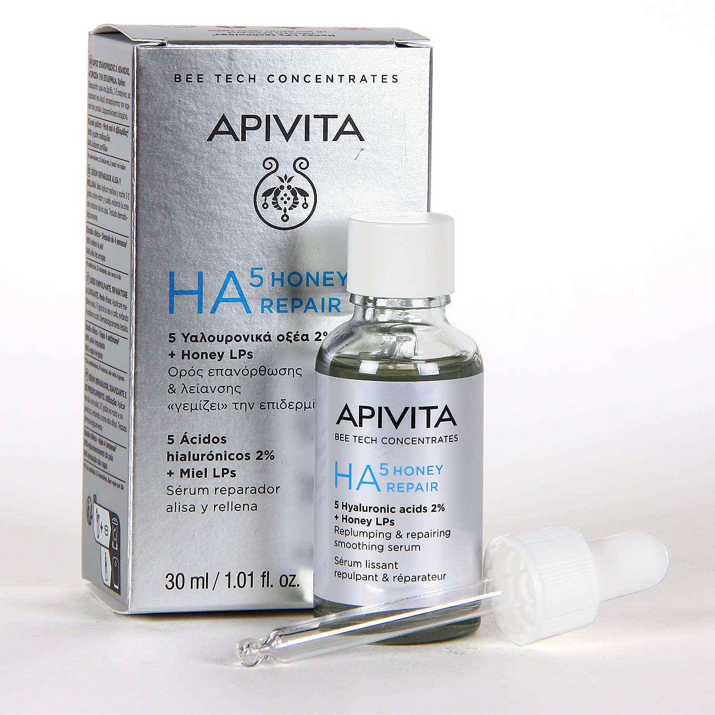 Apivita HA5 Honey Repair Serum es un cuidado reparador que ofrece una potente acción de relleno, reduciendo las arrugas para una piel más lisa y suave. Su rica concentración con miel y ácido hialurónico ayuda a recuperar la hidratación en las capas más internas del rostro, reforzando a su vez la función barrera para una piel equilibrada, jugosa y suave.