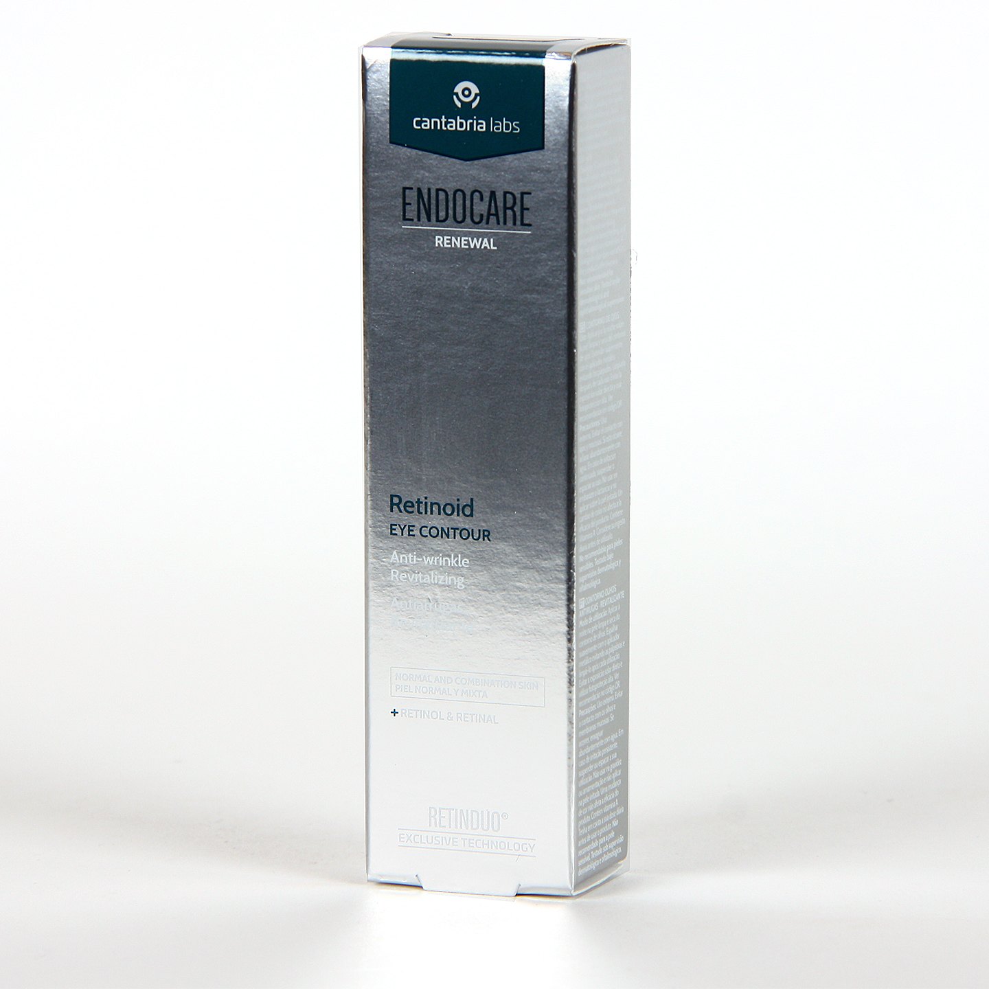 Endocare Renewal Retinoid Eye es un cuidado para el contorno de ojos con acción correctora y renovadora que trata las arrugas marcadas y acentuadas, 'patas de gallo', así como las arrugas del labio superior. Este tratamiento cuenta con una rica formulación con un 0.05 % de retinol, retinal, cafeína y un booster exclusivo de Cantabria Labs con ingredientes de origen natural, para descongestionar el contorno, disminuyendo las bolsas, al tiempo que también ayuda a aclarar las ojeras.