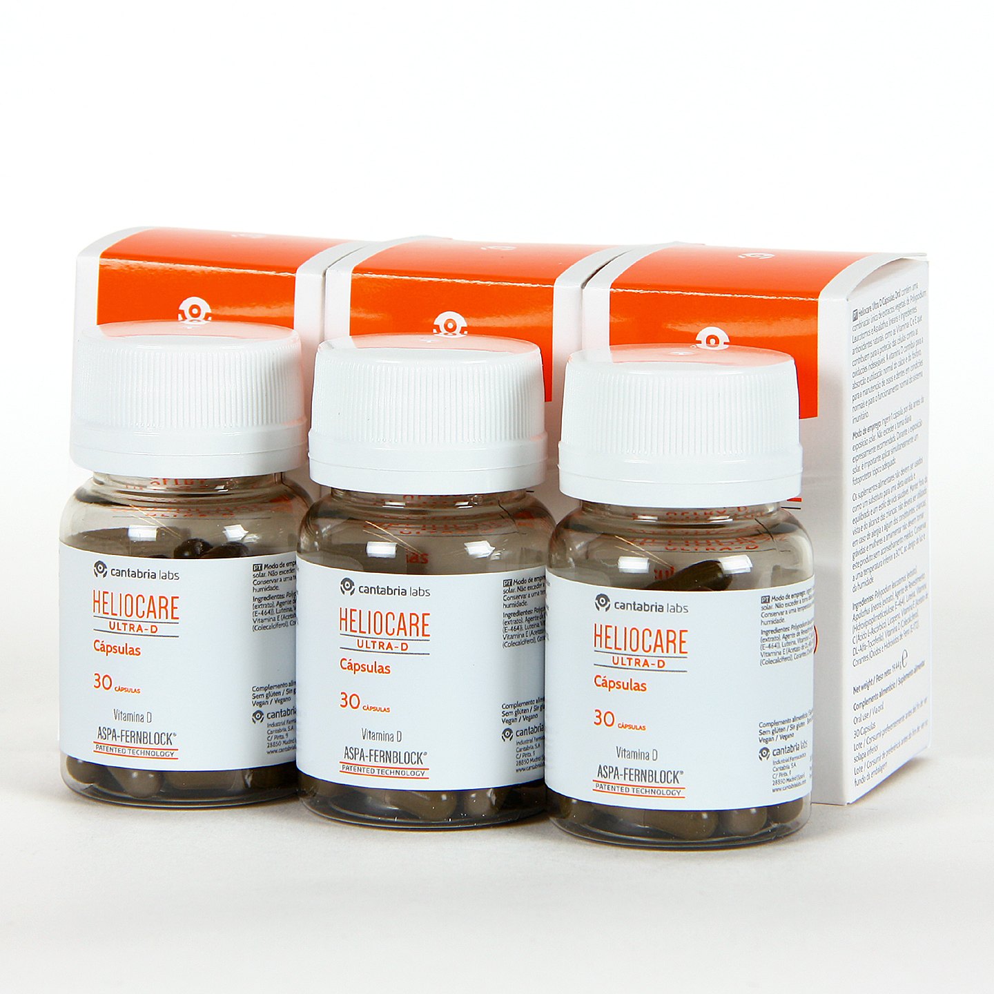 Heliocare Ultra D cápsulas Pack Triplo, a base de cápsulas fotoinmunoprotectoras con acción antioxidante, que aportan la máxima protección frente a la sensibilidad solar extrema. Su composición está enriquecida con Fernblock, la 1ª tecnología patentada que protege de manera uniforme toda la superficie corporal frente a los efectos nocivos de radiaciones solares y vitamina D que es clave para nuestro estado de salud general. Pack promoción triplo con 25% de descuento respecto a 3 envases de venta individuales.