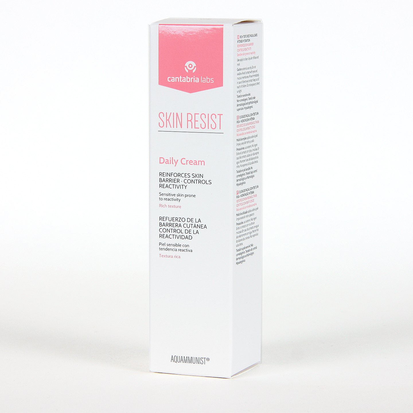 Skin Resist Daily Crema es un cuidado hidratante en textura crema para pieles secas sensibles y reactivas, que necesitan un extra de nutrición para combatir la sequedad. Esta crema rica de uso diario, además de ofrecer un efecto nutritivo, reduce la reactividad y sensibilidad del rostro al fortalecer la barrera cutánea, aportando a su vez una acción antiedad con la que previene y atenua los signos de envejecimiento.
