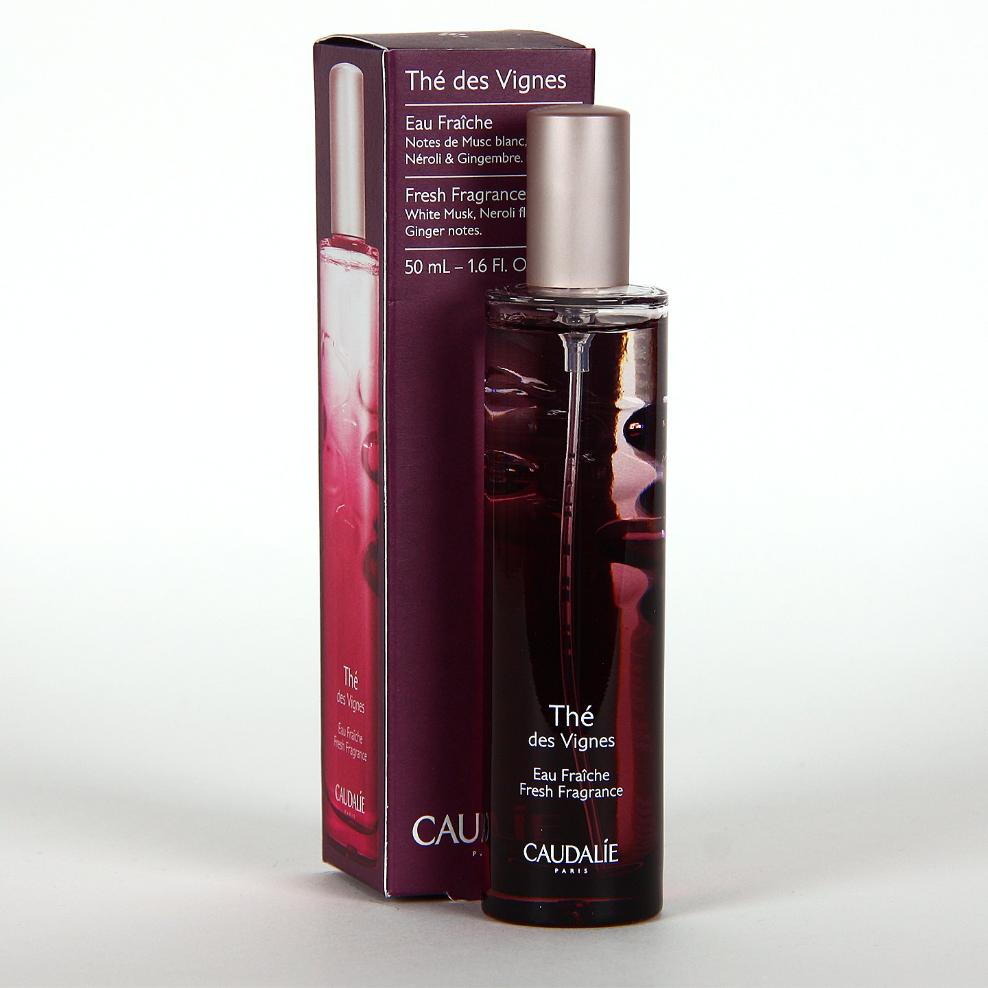 Caudalie Thé des Vignes Agua Fresca 50ml es un agua perfumada especialmente suave y sensual, evoca las notas voluptuosas de almizcle blanco, de neroli y de jengibre, en una infusión de azahar y de jazmín. El 89% de los ingredientes son de origen natural.