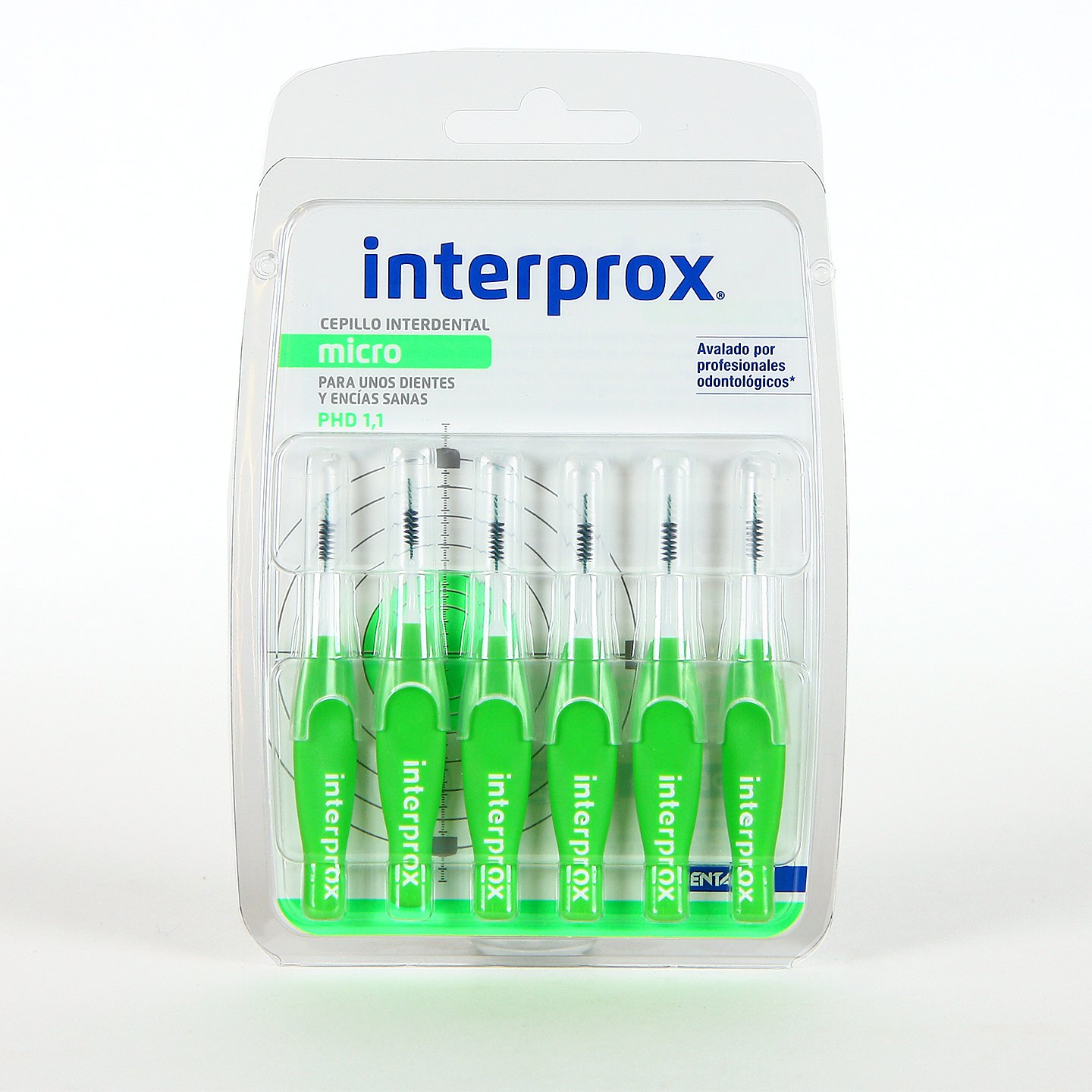 Interprox Micro limpia eficazmente los espacios interproximales y ayuda a proteger los dientes de las caries y enfermedades periodontales. Ha sido diseñado para eliminar el biofilm oral (placa bacteriana) acumulado en los espacios interproximales de 1.1 mm y es especialmente recomendable para la parte frontal de la boca. Su forma facilita una entrada perpendicular a la espacios interdentales delanteros, evitando causar heridas en las encías.