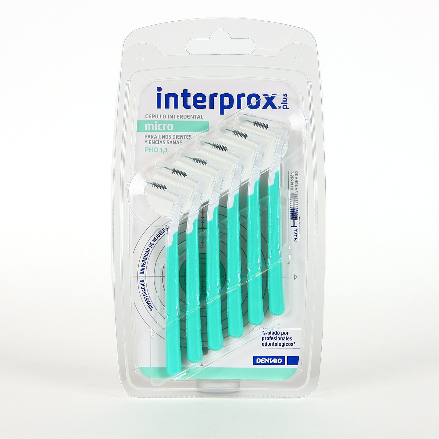 Interprox Plus Micro ha sido diseñado para eliminar el biofilm oral (placa bacteriana) acumulado en los espacios interproximales de 1,1 mm, concretamente de la zona premolar o molar. Su cabezal en ángulo facilita el acceso a los espacios interdentales en la zona de los premolares o molares. Este diseño específico permite una entrada perpendicular, evitando causar heridas en las encías.