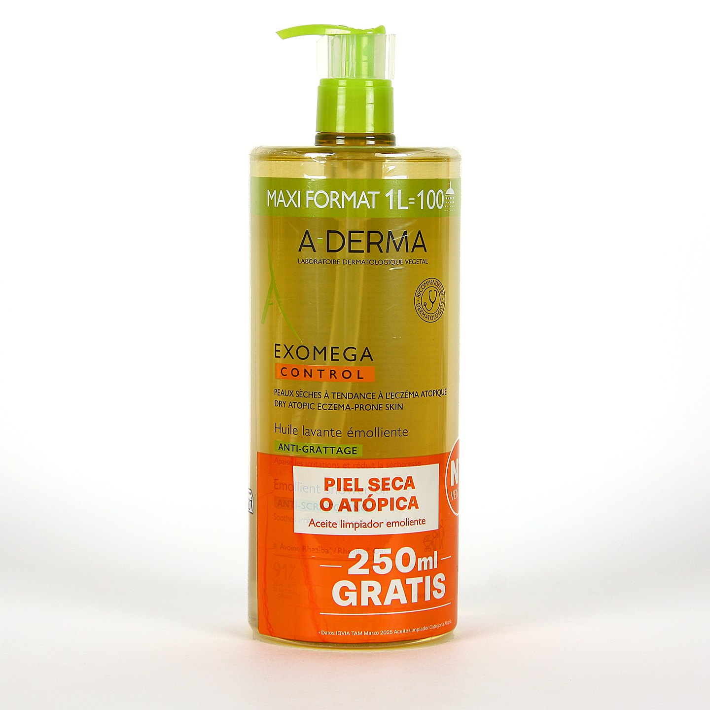 ADerma Exomega Aceite Limpiador es un cuidado de higiene corporal y facial, en aceite y sin jabón, que además de limpiar la piel de manera suave y eficaz. Su potente acción emoliente, además de ayudar a calmar la sensación de picor y irritación en pieles secas, muy secas, atópicas y con tendencia a padecer eczemas, nutre de manera intensa y duradera, reforzando la función barrera de la piel.