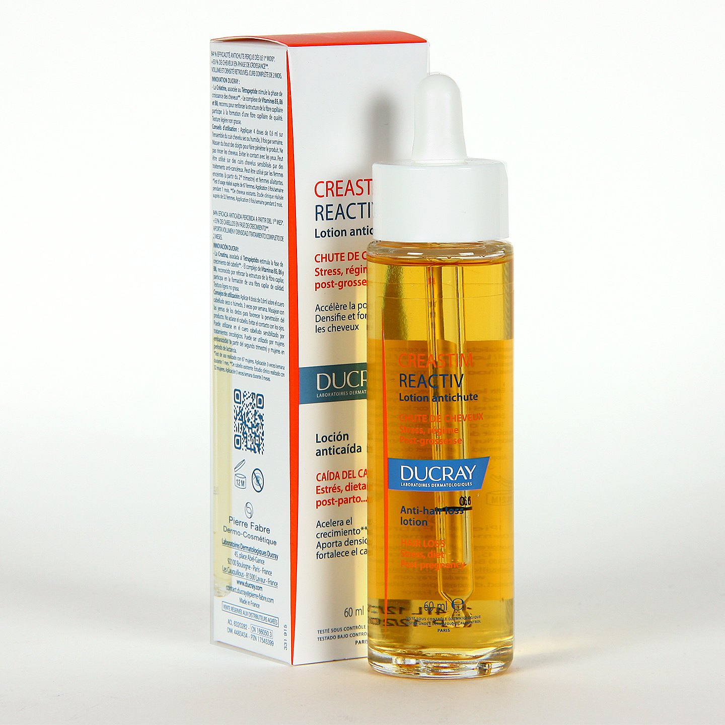 Ducray Creastim Loción anticaída de fácil aplicación en spray para la caída ocasional del cabello en situaciones diversas como estrés, anemias, cambios hormonales, después del parto, etc. Sus principios activos frenan la caída a la vez que refuerzan y redensifican el cabello.