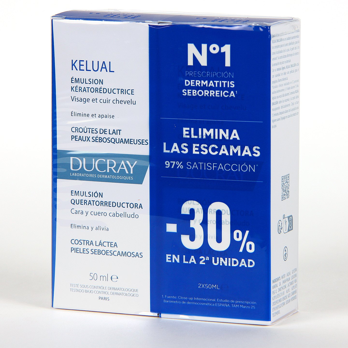 Pack Duplo Ducray Kelual Emulsión con textura ligera que ayuda a eliminar las escamas faciales y capilares. Elimina suavemente la costra láctea del cuero cabelludo del bebé, calma el picor aportando confort a la piel enrojecida e inflamada con dermatitis seboescamosa del cuero cabelludo de lactantes y adultos. Pack con dos unidades de Ducray Kelual Emulsión 50ml.