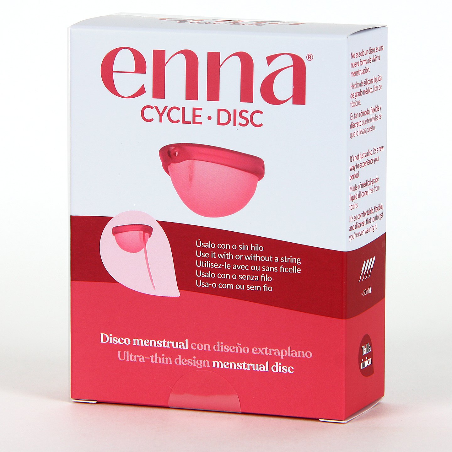 Enna Cycle Copa Menstrual Disco Extraplano ha sido diseñada para adaptarse al ritmo de vida actual, ofreciendo protección eficaz y una sensación natural, diseño extraplano tipo disco se adapta mejor a la anatomía interna.