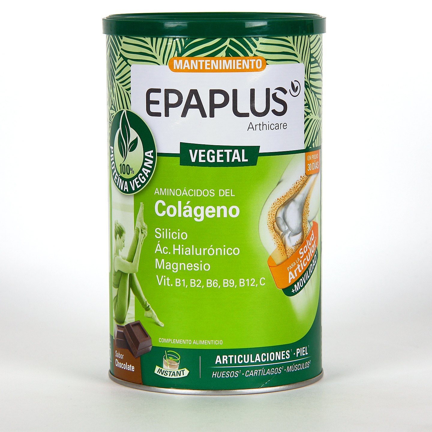 Epaplus Arthicare Vegetal Sabor Chocolate es un complemento alimenticio con base de aminoácidos del colágeno hidrolizado, silicio, ácido hialurónico, magnesio, antioxidantes y vitamina B1, B2 y B6, ideal para el correcto y el buen mantenimiento de articulaciones. Además, este suplemento en polvo, que contiene un cien por cien de proteína vegana, no contiene gluten, lactosa, conservantes ni colorantes, cuenta con una disolución instantánea y un agradable sabor chocolate.