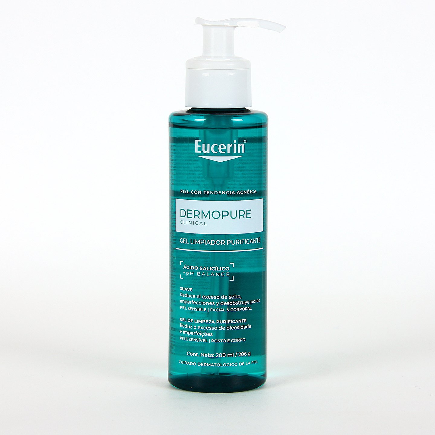 Eucerin DermoPure Gel Limpiador 200 ml es un cuidado de higiene facial diaria, formulado específicamente para pieles grasas y con tendencia acneica, así como con imperfecciones grasas, incluso en casos de acné persistente o adulto. Este limpiador ayuda a eliminar el exceso de sebo, impurezas y restos de maquillaje del rostro sin alterar la barrera cutánea, ofreciendo una higiene profunda que evita la proliferación bacteriana y por tanto, el acné.