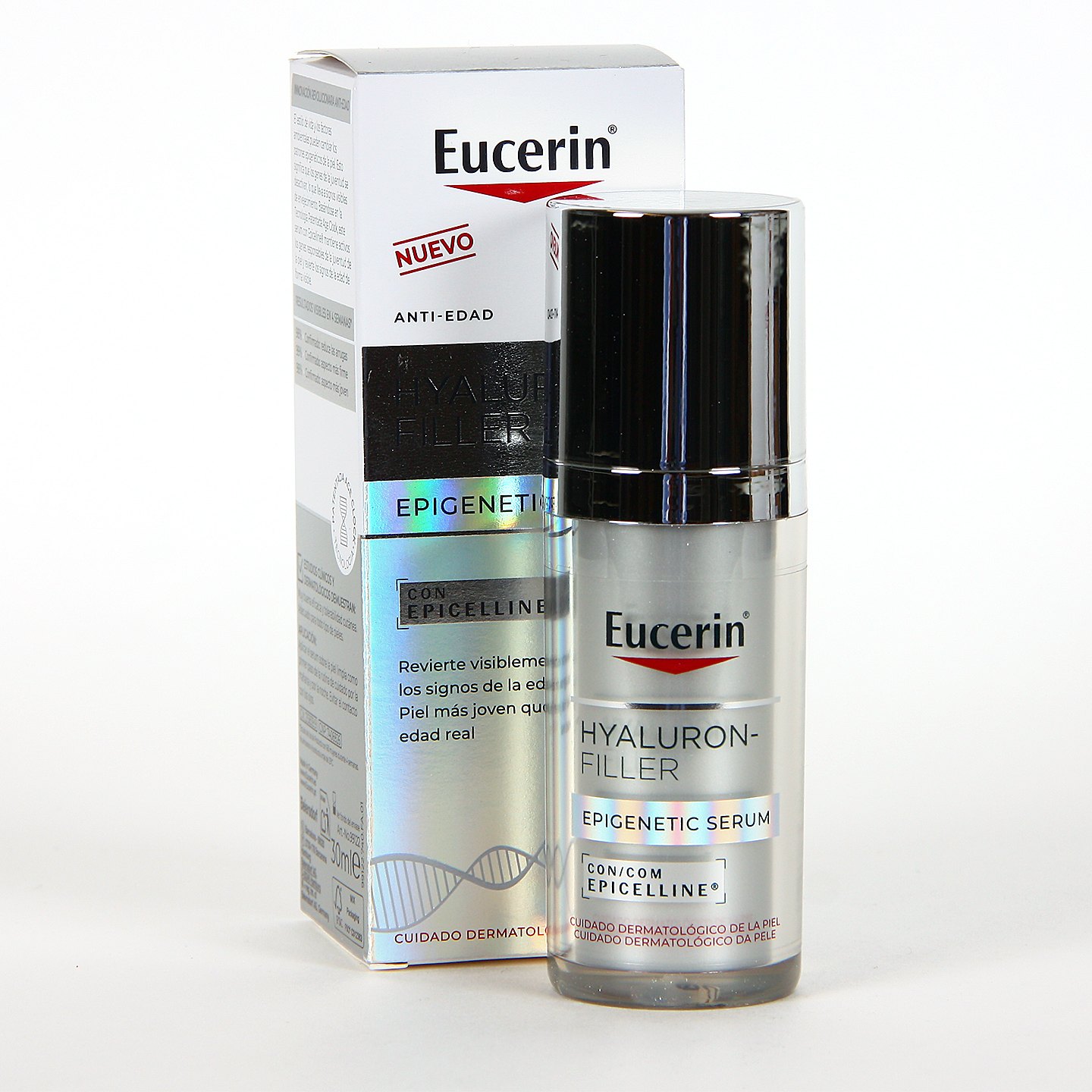 Eucerin Hyaluron Filler Epigenetic Serum es un cuidado antiedad, rico en ácido hialurónico de alto y bajo peso molecular, que además de hidratar y nutrir el rostro, ofrece una potente acción de relleno con la que disminuye las arrugas y líneas de expresión, para una piel tersa y rejuvenecida. Este serum revierte los signos de envejecimiento, al regenerar las células de la piel, aportando a su vez un cuidado de firmeza para un efecto lifting que ayuda a que la piel esté suave y lisa.