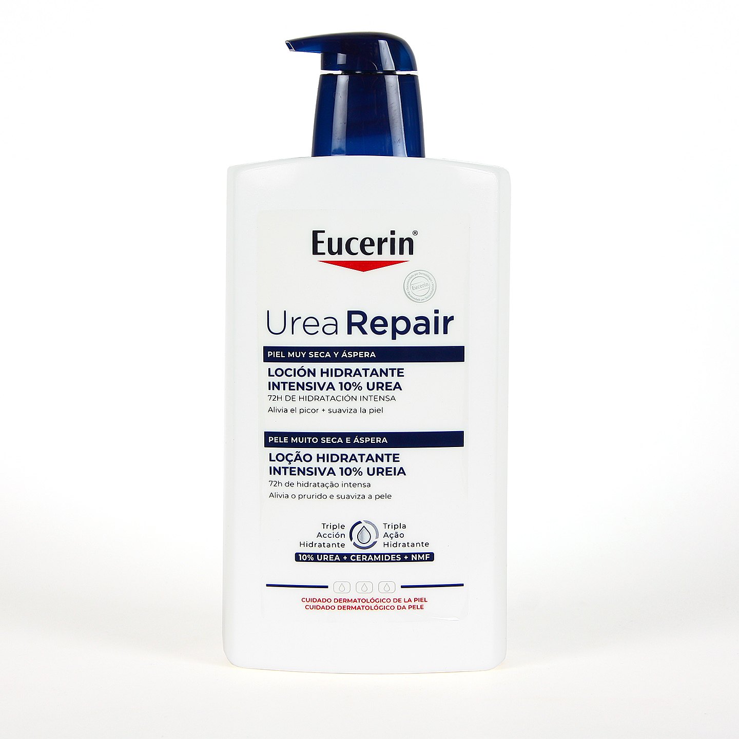 Eucerin Urea Repair Plus Loción con una concentración de Urea del 10%, hidrata de manera duradera y profunda la piel más seca, irritada y sensible dejando la piel suave e intensamente nutrida, evitando la descamación. Su cuidadosa formulación, con urea, ceramida y otros ingredientes hidratantes, alivia la sensación de irritación y picor en las pieles extremadamente secas, al tiempo que repara y restaura la función barrera de la piel, disminuyendo la pérdida de hidratación.