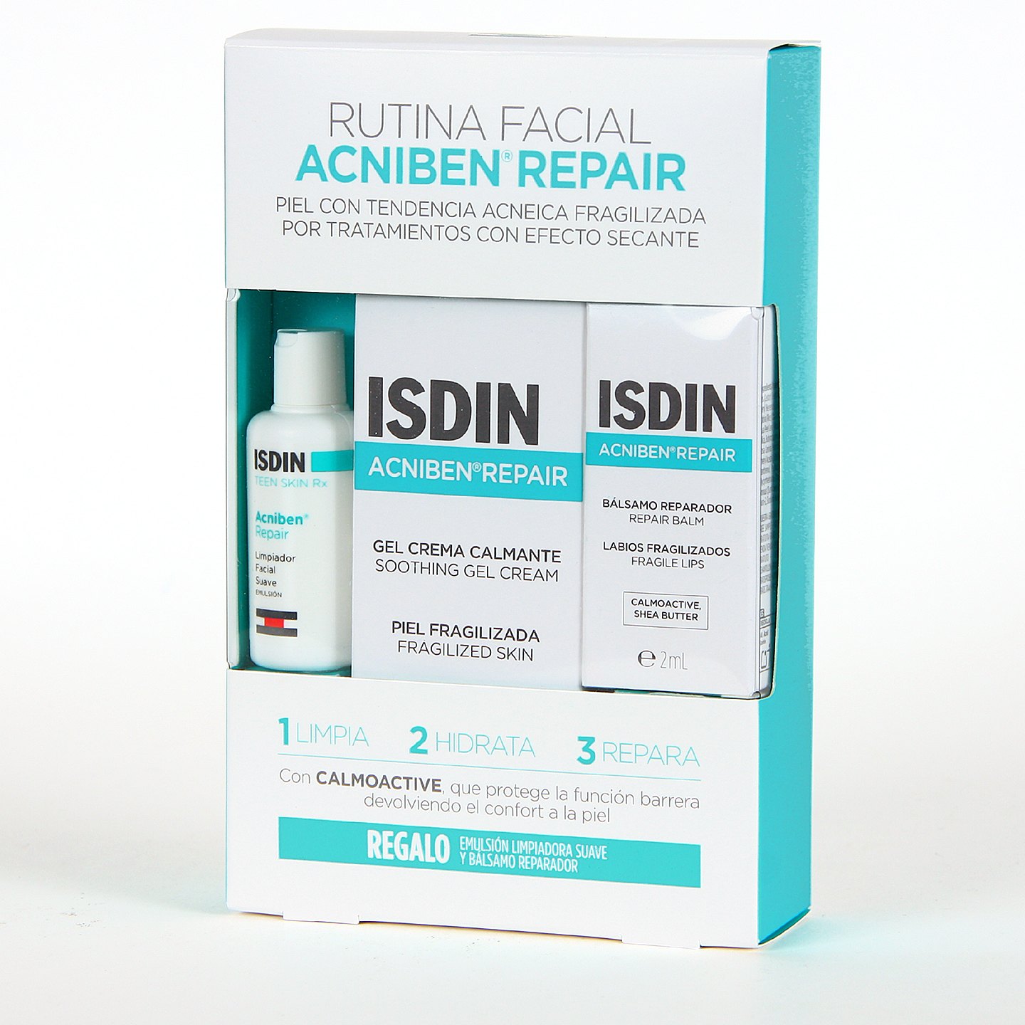 Gel-crema oil-free hidratante para el cuidado específico de la piel sometida a tratamiento farmacológico. Con Calmoactive, regulador de la inflamación y con activos que reducen los efectos adversos cutáneos del tratamiento, (sequedad, irritación, descamación) e hidratan de forma intensa y prolongada. Protege, alivia la piel y acelera los resultados. Pack promoción para que pruebes Acniben Repair Limpiador facial suave emulsión y Acniben Repair Bálsamo renovador labial.