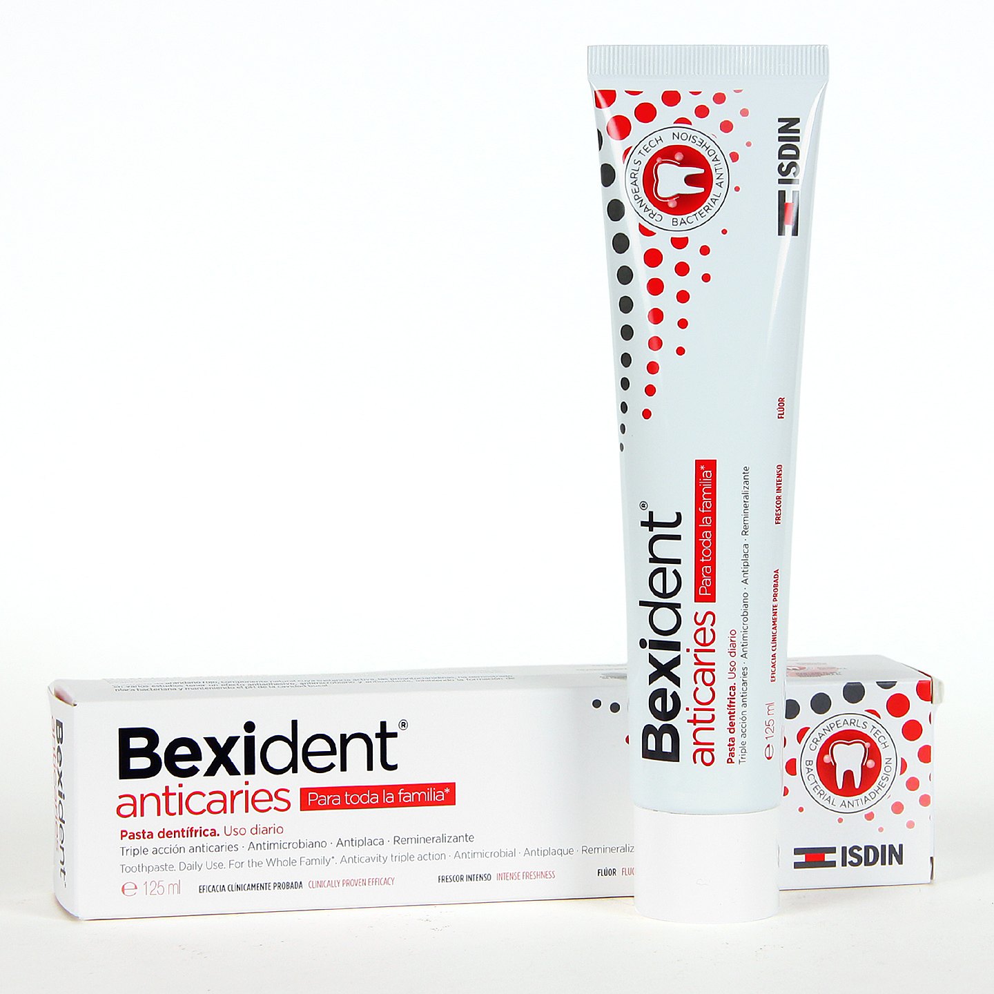 Pasta dentífrica anticaries de uso diario que combate la caries gracias a su combinación de fluoruro sódico y extracto de arándano rojo que impide la adhesión de las bacterias a los dientes con lo que evita la formación de placa bacteriana. Mantiene el pH para remineralizar el esmalte y tiene acción antiplaca y antiséptica.