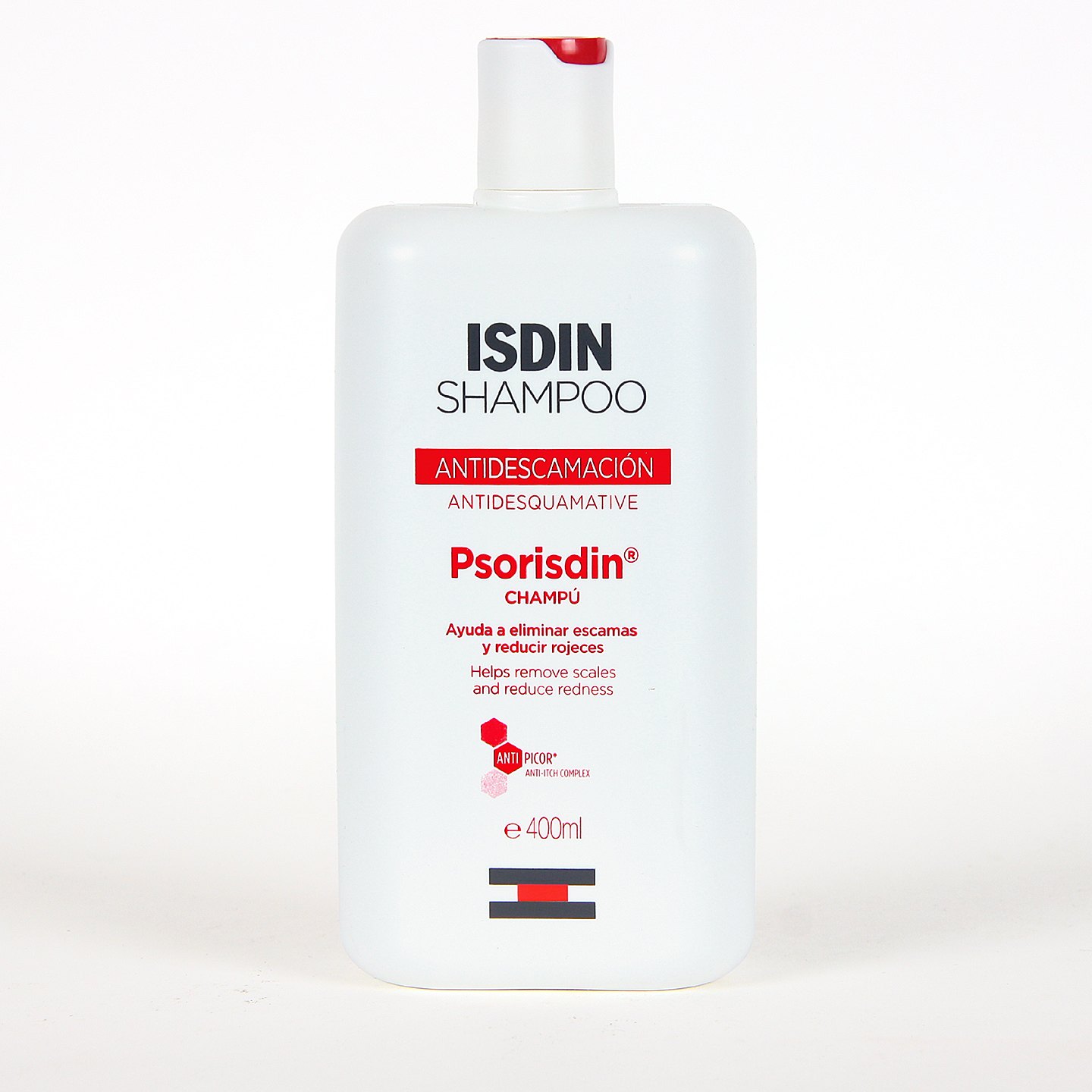 ISDIN Hydration Psorisdin Control Champú con una fórmula innovadora con 3% de ácido salicílico que gracias a la asociación potenciada de activos queratorreguladores y antipruriginosos, permite eliminar las escamas, reducir las rojeces y aliviar el picor característico de los estados descamativos rebeldes del cuero cabelludo, ya sean crónicos o de intensidad variable.