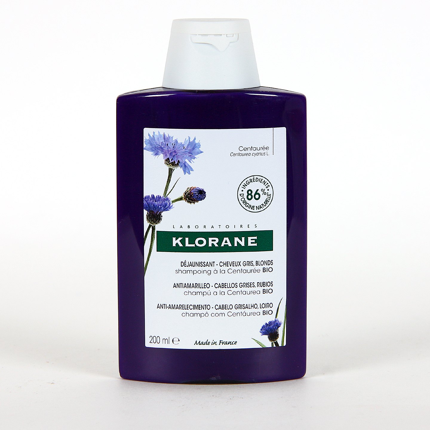 Klorane Capilar Champú a la Centaurea es un champú anti-amarilleo desarrollado especialmente para la higiene y limpieza de los cabellos blancos o grises, proporcionando reflejos plateados y disminuyendo el amarilleo del cabello. El pelo queda más suave y fácil de peinar y, además, reaviva su brillo natural.
