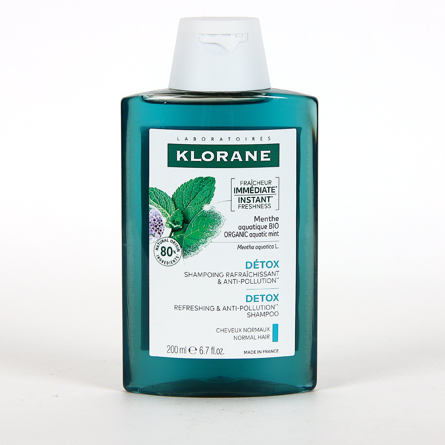 Klorane Champú a la Menta Acuática es un producto de higiene capilar detox indicado para cabellos expuestos a contaminación, humos y olores. Limpia a fondo el cuero cabelludo respetando su equilibrio natural, dejando el cabello fresco y aireado. Su fórmula está enriquecida con extracto de Mentha aquatica, una base lavante y un suave aroma a menta muy agradable para los sentidos. Sin parabenos ni siliconas.