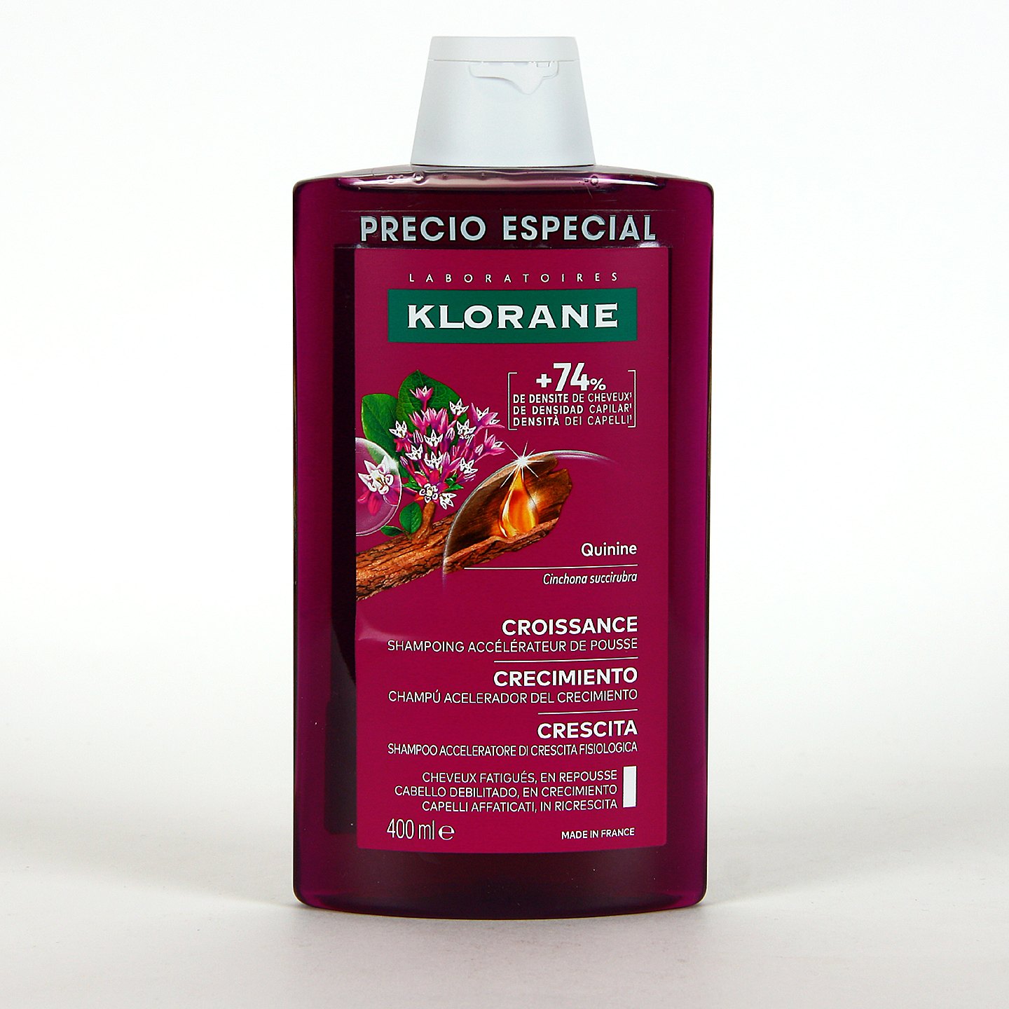 Recomendamos el formato Klorane Crecimiento Quinina Champú 400 ml para quienes realizan tratamientos de crecimiento capilar continuados.