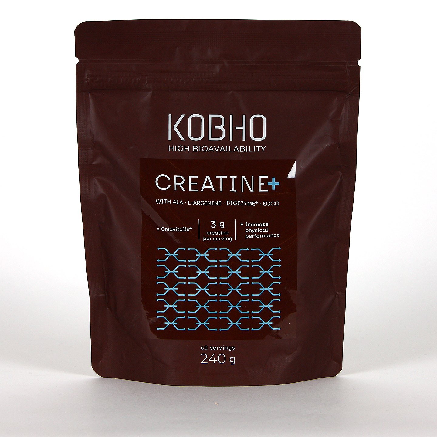 Kobho Creatina Plus 240g es un complemento alimenticio formulado para mejorar la fuerza, favorecer la recuperación muscular y mejorar el rendimiento físico y mental. Combina 3g de Creatina neta de máxima pureza (Creavitalis), combinada con L-arginina, ácido lipoico, EGCG de té verde y la patente Digezyme para maximizar su absorción. Apto para veganos.