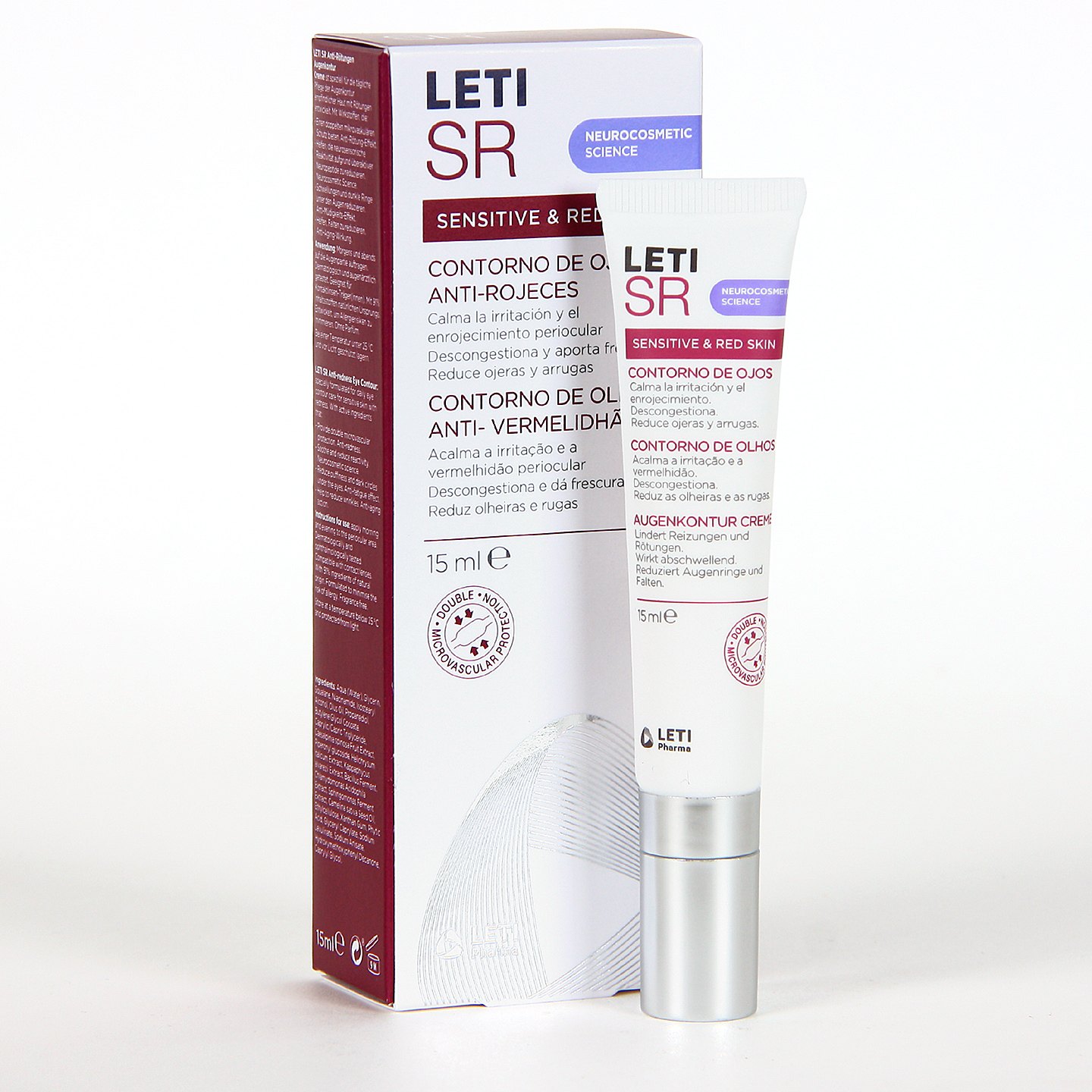 Leti SR Antirojeces Contorno de Ojos es un cuidado para la zona periocular de pieles sensibles y reactivas, que ofrece una protección y correcto mantenimiento de la función barrera, previniendo las molestias e irritaciones en el contorno. Además, ofrece un cuidado antiedad ayudando a reducir ojeras vasculares y pigmentadas, así como la inflamación de las bolsas, ofreciendo una acción reafirmante con efecto lifting inmediato en la zona del párpado superior.