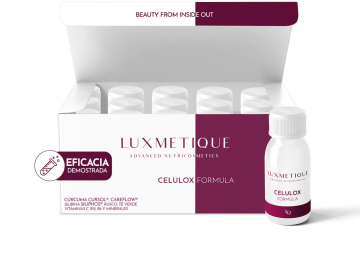 Luxmetique Celulox es un complemento formulado para ayudar a mejorar el aspecto de la piel con celulitis, contribuyendo a una textura más lisa y uniforme. Su acción se orienta a combatir la retención de líquidos y a apoyar el metabolismo implicado en la acumulación de grasa localizada.
