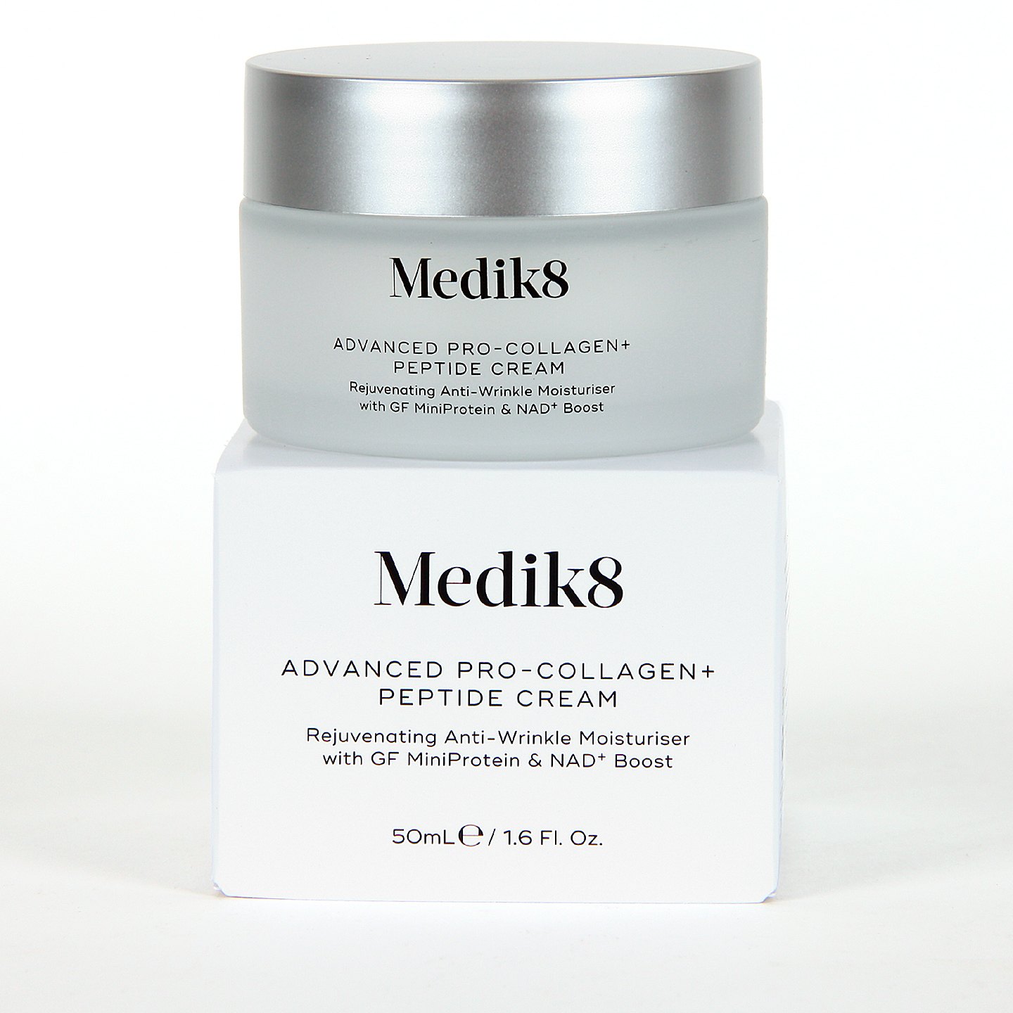 La fórmula Medik8 Advanced Pro-Collagen+ Peptide Crema combina activos biotecnológicos de alta eficacia: