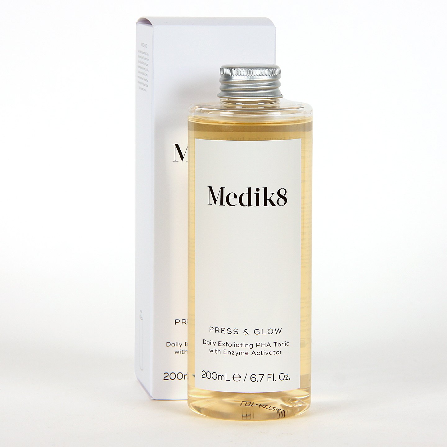 Medik8 Press & Glow Refill 200 ml es un tónico exfoliante suave con PHA diseñado para mejorar la luminosidad, textura y uniformidad de la piel sin irritar. Su formato refill permite recargar el envase original, ofreciendo una opción más sostenible para tu rutina facial.