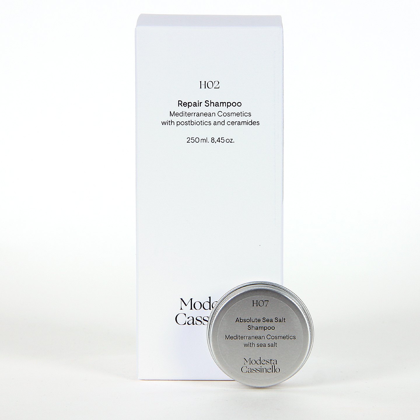 Modesta Cassinello H02 Champú Reparador 250ml REGALO Minitalla H07 Champú Sal marina