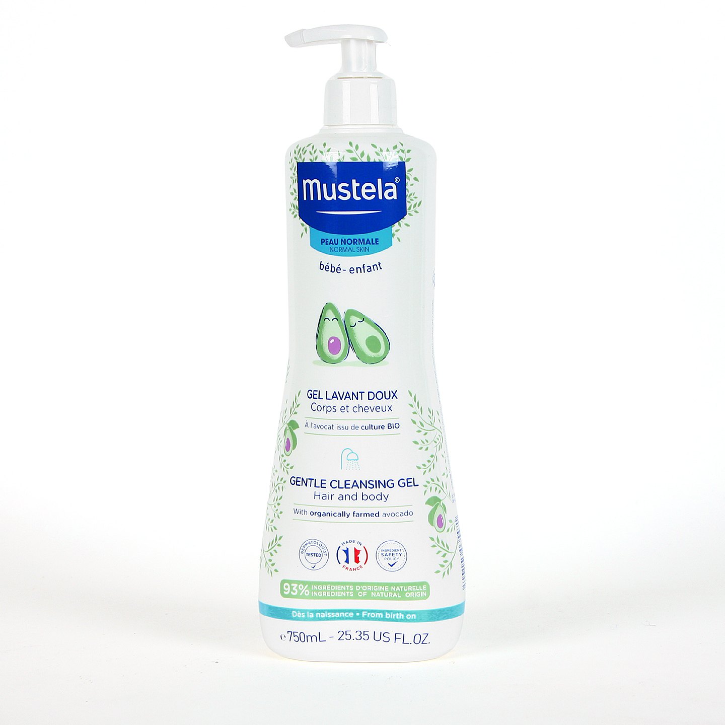 Mustela Gel Dermolimpiador es un producto de higiene diaria, sin jabón, con PH neutro que respeta el film hidrolipídico que le aportan propiedades suavizantes, pudiéndose usar desde el primer día en cuerpo y cabello. No pica en los ojos.