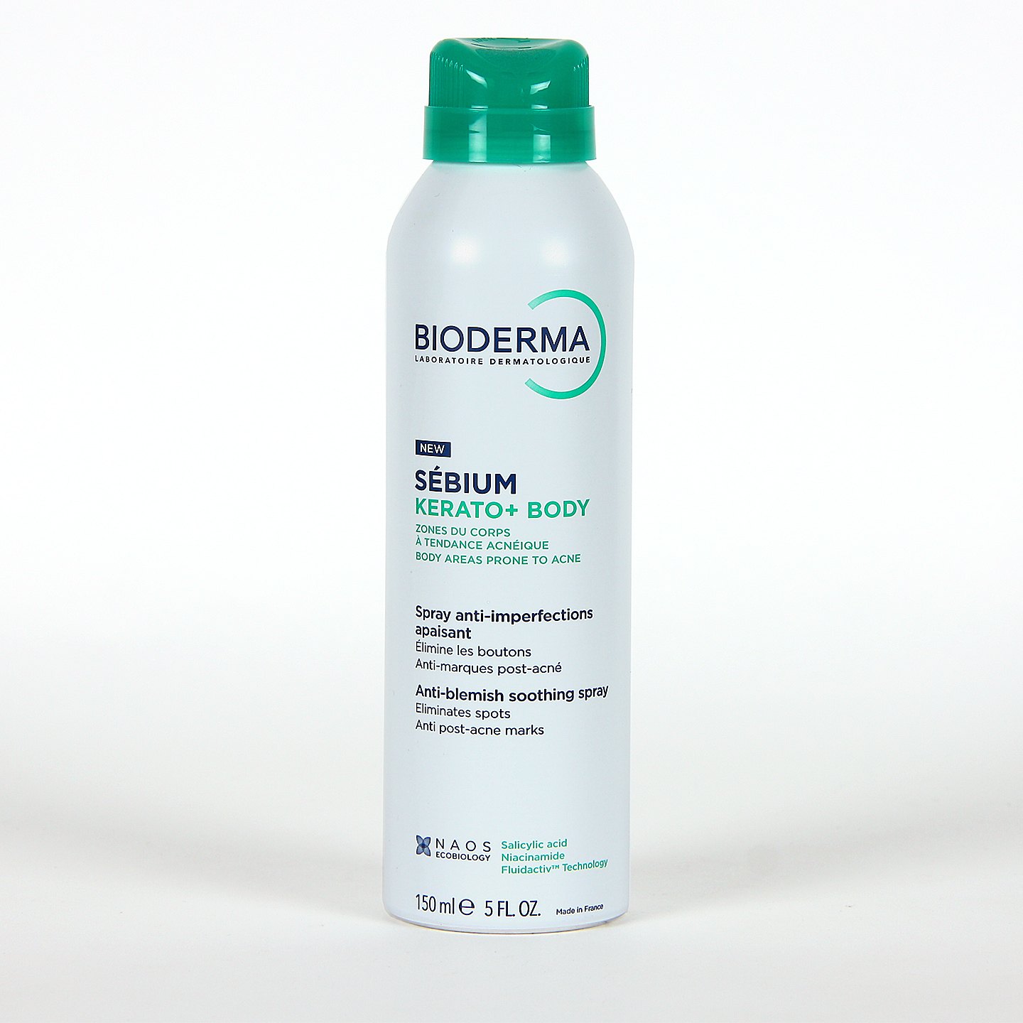Bioderma Sebium Kerato+ Body Spray es un cuidado corporal antiimperfecciones con triple acción al reducir los granos, disminuir las marcas y manchas residuales de acné de manera rápida, ofreciendo a su vez una sensación de calma y confort cutáneo. Su rica composición de activos, entre los que destaca Niacinamida y ácido salicílico, ayuda a controlar el exceso de grasa, previniendo así la aparición de granos y reduciendo la inflamación y rojeces que provoca el acné, para una piel más lisa y suave.