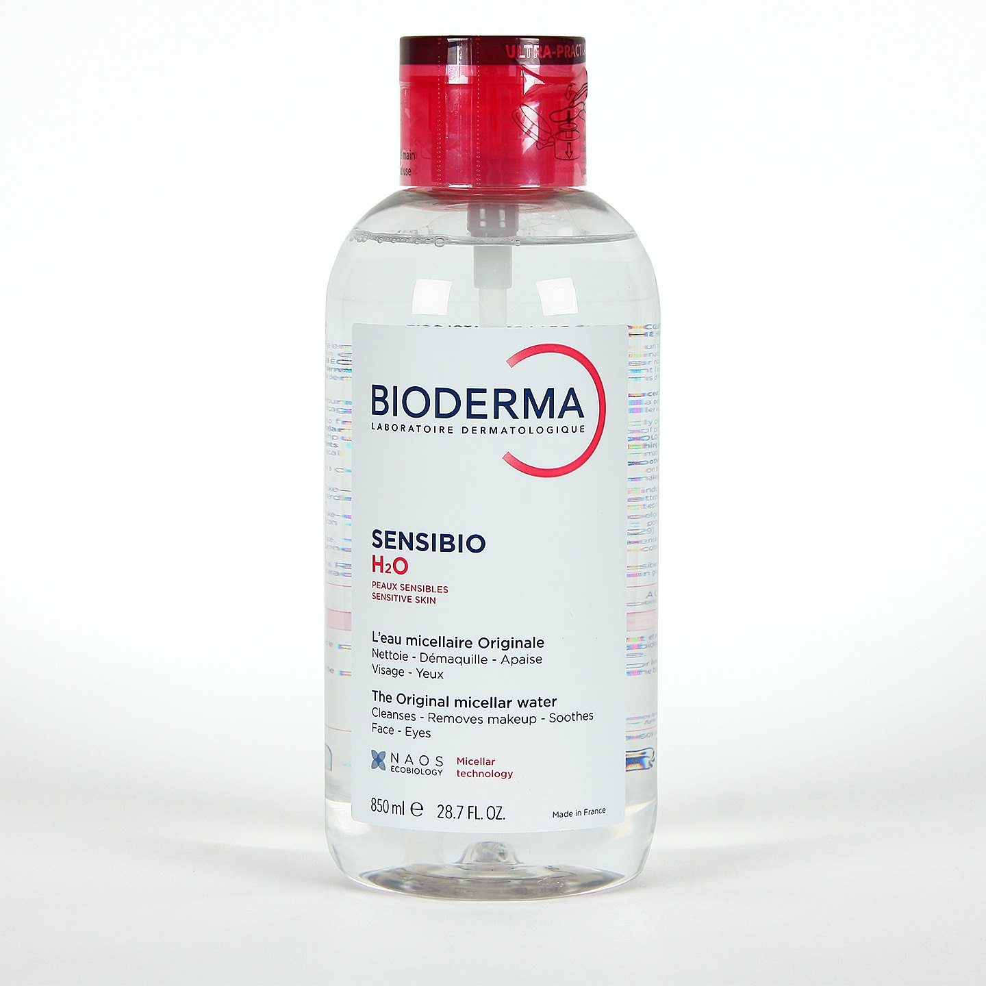 Bioderma Sensibio H2O PUMP Solución Micelar Piel Sensible, ahora en envase dosificador y de 850 ml, para la higiene diaria de la piel, en especial de los rostros más sensibles y delicados a los que ayuda a eliminar la suciedad, impurezas y maquillaje de manera suave y sin irritar la piel. Las pieles sensibles y delicadas, que pueden utilizar este cuidado de limpieza a diario, conseguirán un efecto calmante y un extra de confort, al combatir la sensación de picor, quemazón y ardor cutáneo.