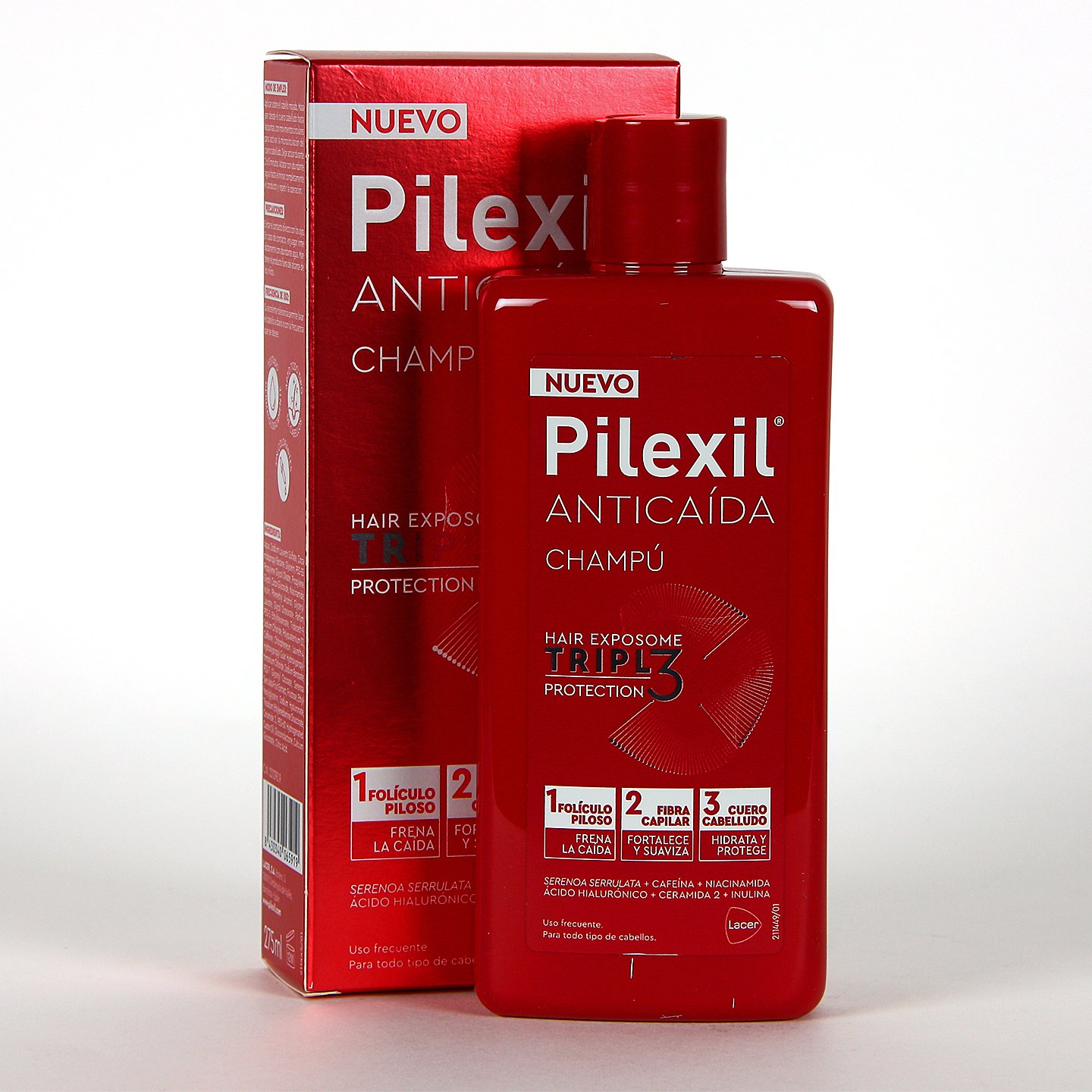 Pilexil Champú Anticaída Triple es un cuidado de higiene capilar que ayuda a frenar la caída y favorece el crecimiento del cabello sano, tanto en hombres como en mujeres. Este champú, de uso diario e ideal para potenciar la acción de los tratamientos orales anticaída, posee una triple acción que actúa a tres niveles para devolver la vitalidad y fuerza al cabello, al proteger y fortalecer el folículo piloso, fibra capilar y cuero cabelludo.
