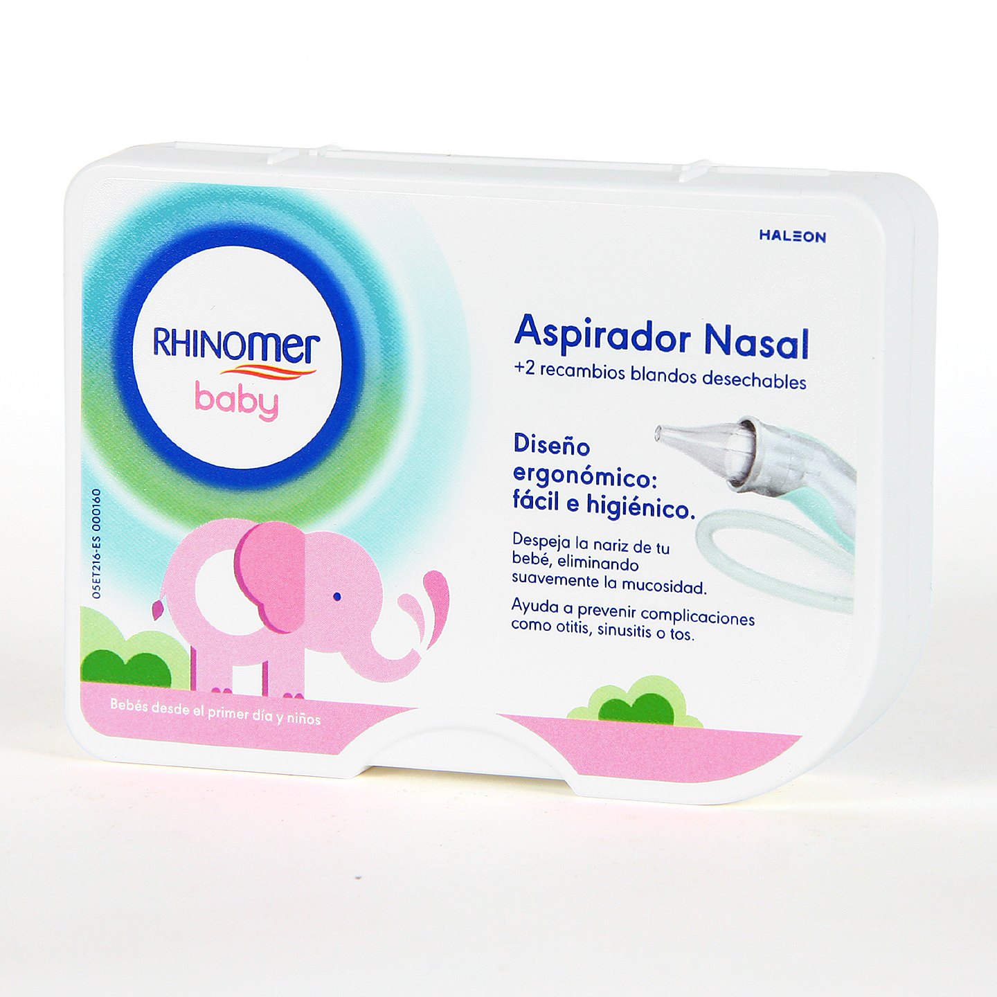 Aspirador nasal que permite la eliminación de las secrecciones nasales que molestan al bebé. Con forma ergonómica y 2 recambios de material suave y flexible que hacen que sea más seguro, higiénico y fácil de usar. Para usar en bebés desde el primer día, siempre que tengan la nariz tapada y tan a menudo como sea necesario.