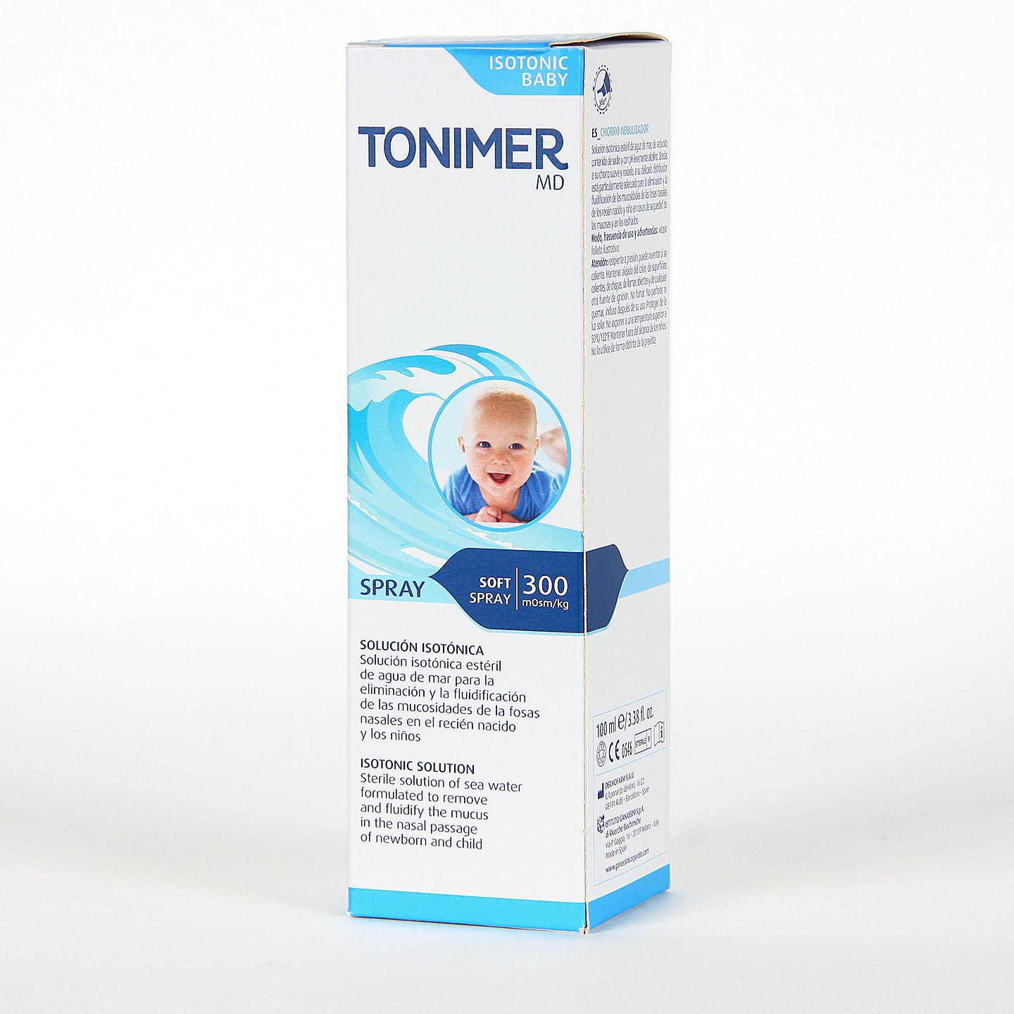 Tonimer Baby Spray Nasal Isotónico es una solución estéril de agua de mar que limpia y ayuda a eliminar la mucosidad, impurezas y alérgenos, acumulados en las fosas nasales de niños, bebés y recién nacidos en procesos de resfriado y ante la sequedad de las mucosas. Su reducido contenido en sodio y con pH levemente alcalino, así como un chorro suave y rociado, favorece la eliminación de la mucosidad acumulada en las cavidades nasales de los más pequeños de manera suave y eficaz.