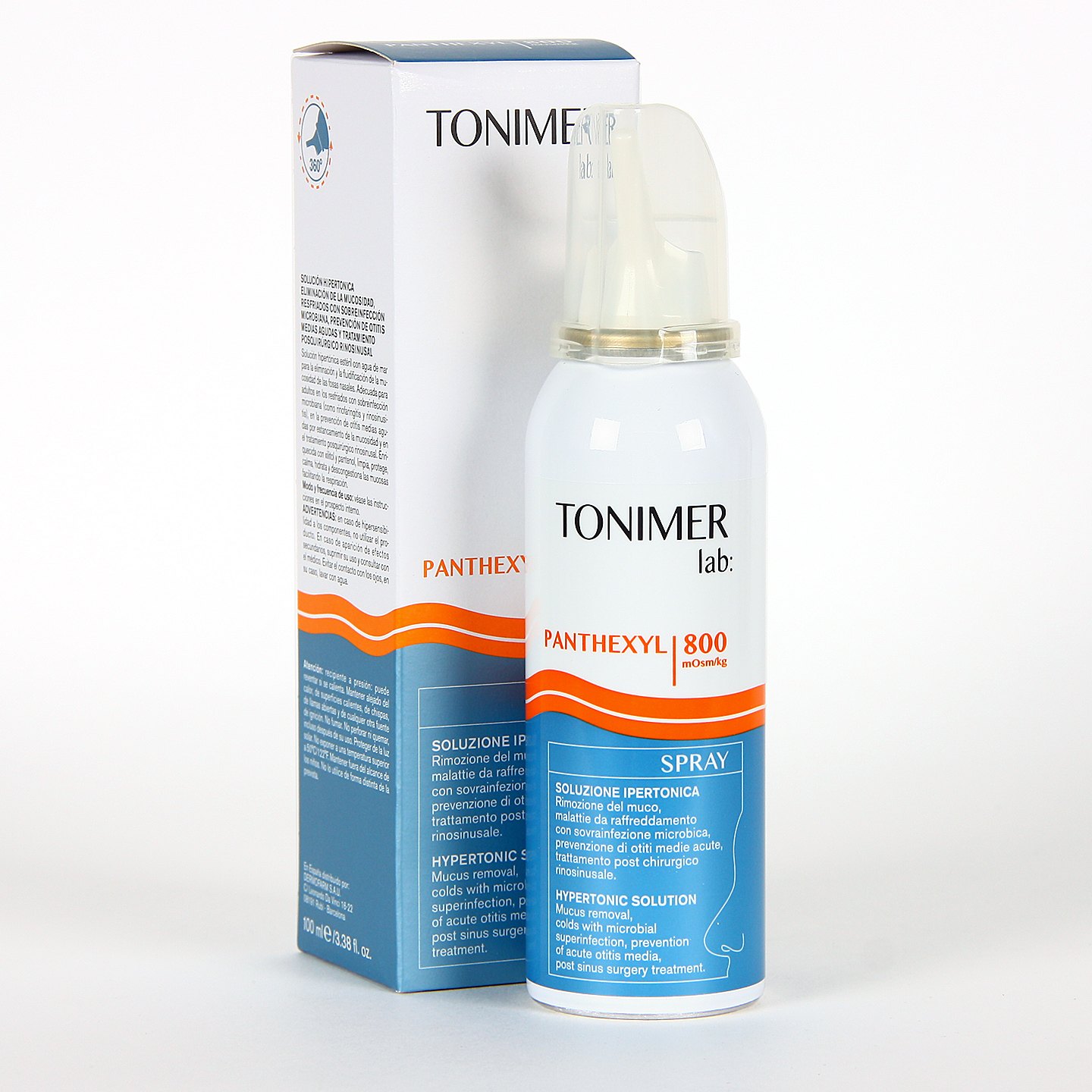Tonimer Spray Nasal Panthexyl es una solución hipertónica estéril con agua de mar que facilita la expulsión y eliminación de la mucosidad acumulada en las cavidades nasales. Este spray nasal para adultos ofrece una acción descongestiva en procesos de resfriado con sobreinfección microbiana como rinofaringitis y rinosinosutis, previniendo la otitis media aguda ante una acumulación y estancamiendo de la mucosidad.