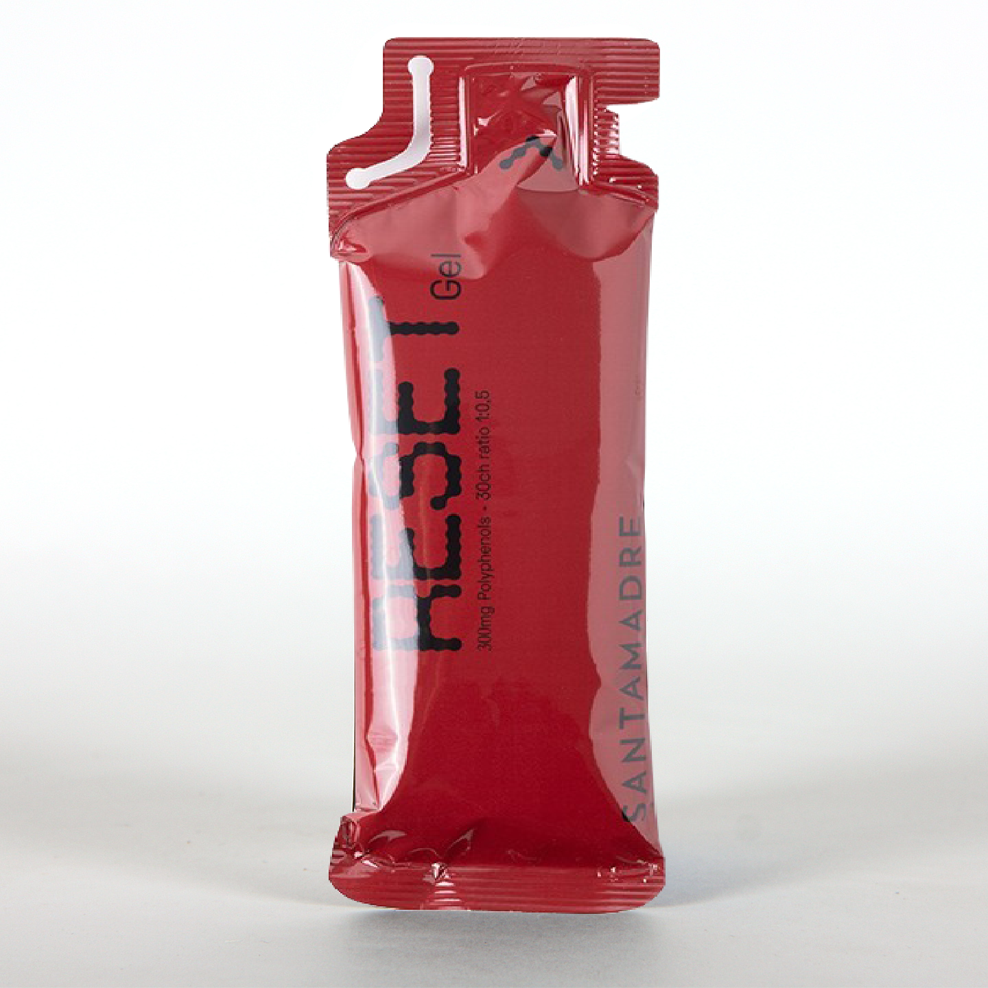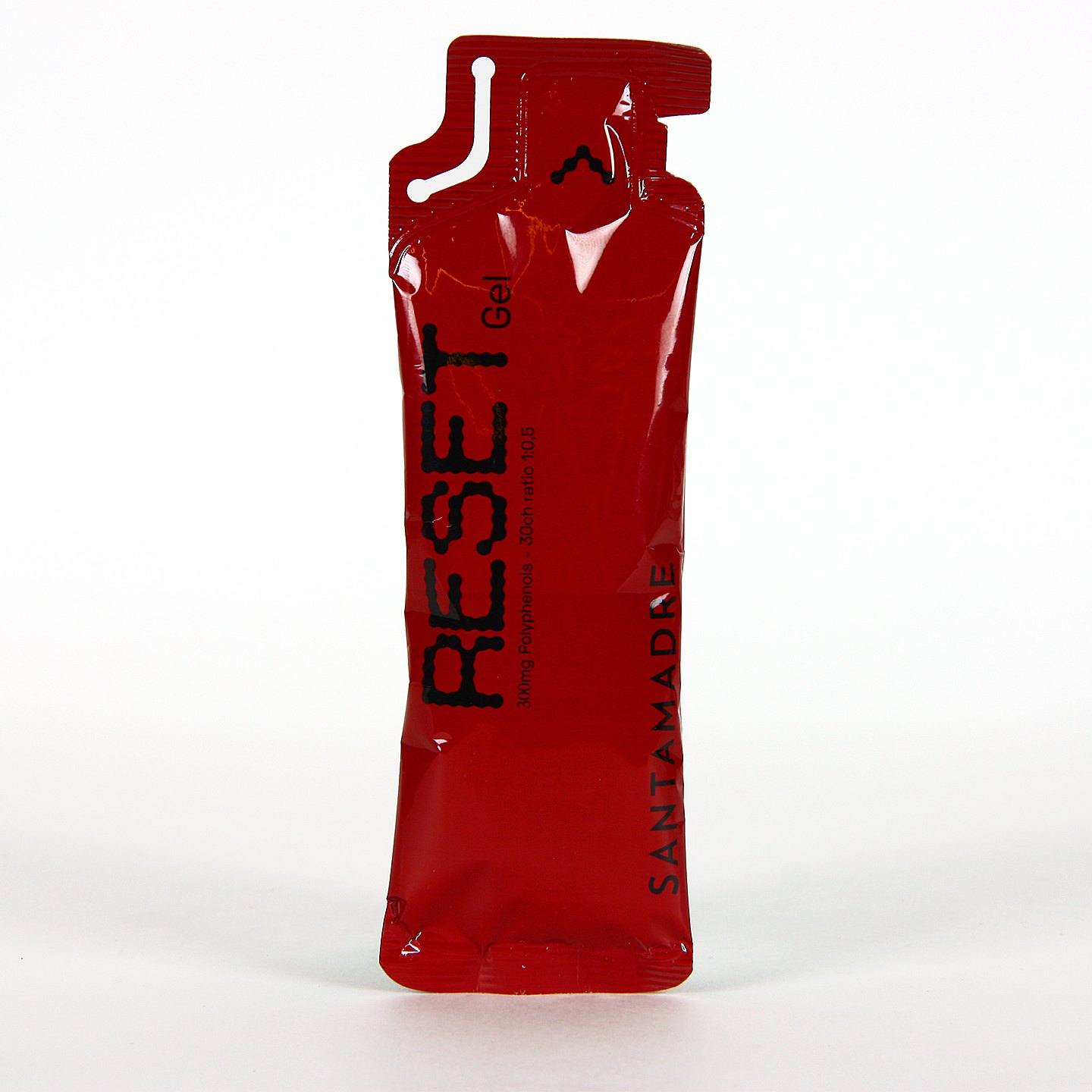 Santa Madre RESET es un gel desarrollado para retrasar la fatiga y reducir la percepción del esfuerzo muscular para ayudar a mantener el máximo rendimiento durante más tiempo. Diseñado para optimizar la energía (aporte 30 gramos de carbohidrato en ratio 1:0.5), mejorar la resistencia y por primera vez en la historia favorecer la recuperación durante el ejercicio gracias a la innovación constante de Santa Madre y composición en extracto de Tart Cherry, que aportan 300 mg de polifenoles de acción antiinflamatoria y antioxidante.