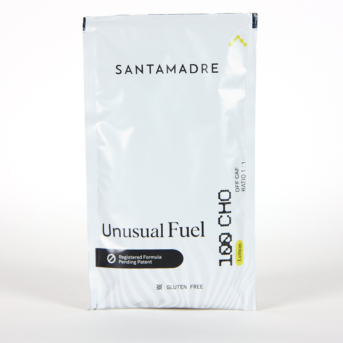 Santa Madre Unusual Fuel 100 CHO OFF Caf es una bebida energética para deportistas que aporta 100 g de carbohidratos y 500 mg de sodio por cada monodosis preparado para 500 ml de agua. Con el revolucionario ratio de carbohidratos 1:1, basado en los últimos estudios científicos y ensayos de campo de la propia marca, es una bebida para alto rendimiento especialmente diseñada para ingestas de más de 110 g de hidratos de carbono por hora. No contiene Cafeína.