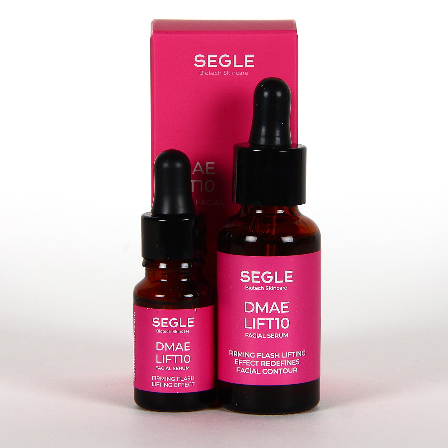 SEGLE DMAE Lift Serum concentrado en activos tensores y reafirmantes, Dmae y Zirhafirm®, que consigue un efecto lifting inmediato y un efecto remodelante voluminizador progresivo. Evita la pérdida de densidad y ejerce una acción de relleno para alisar las arrugas y líneas de expresión. Remodela el óvalo facial, potencia la luminosidad y contrarresta la flacidez. Efecto buena cara instantáneo.
