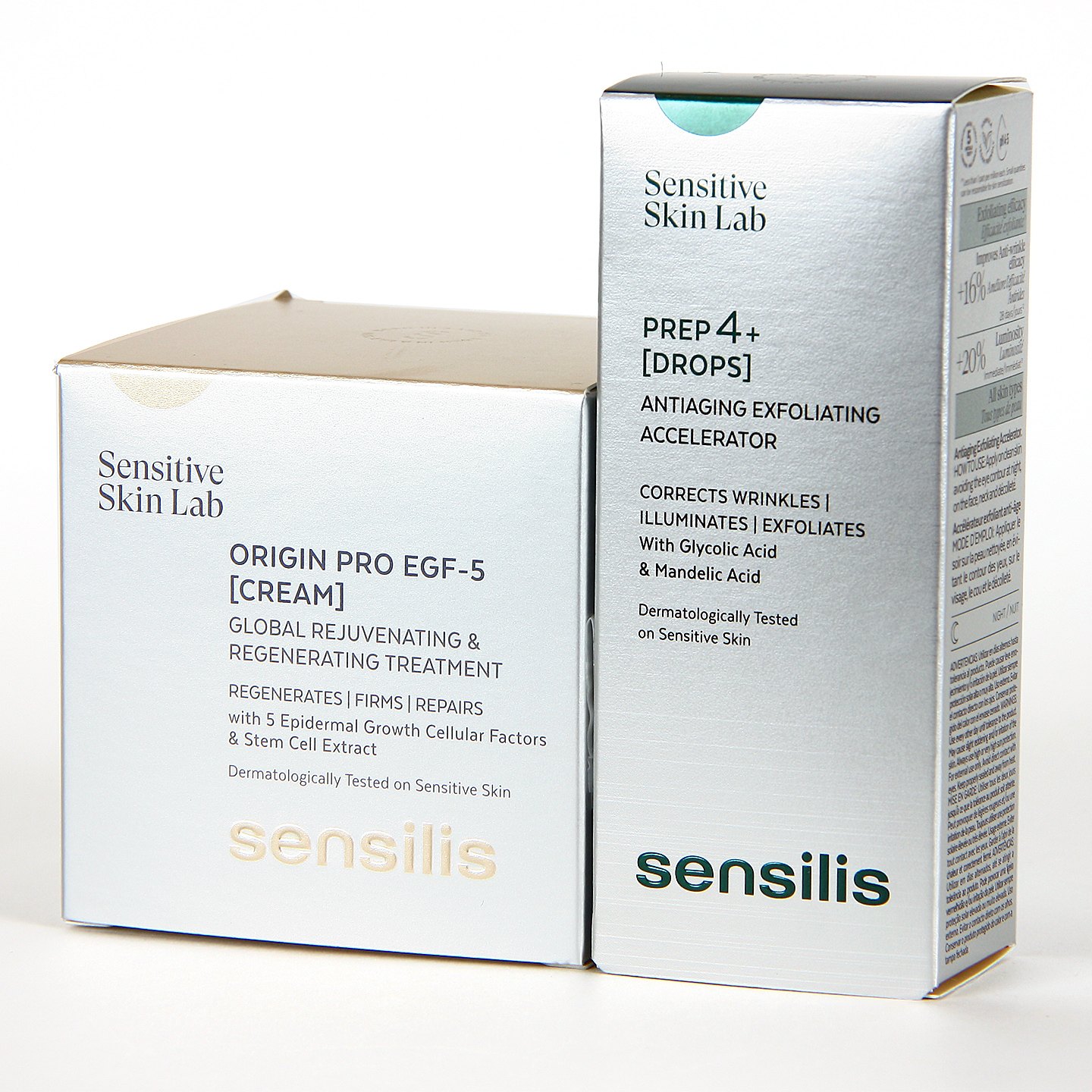 Pack Promoción de la crema Sensilis Origin Pro EGF5 con un Sensilis Prep4+ Drops Acelerador Exfoliante Antiedad 30 ml de regalo, ¡valorado en 28,95€!