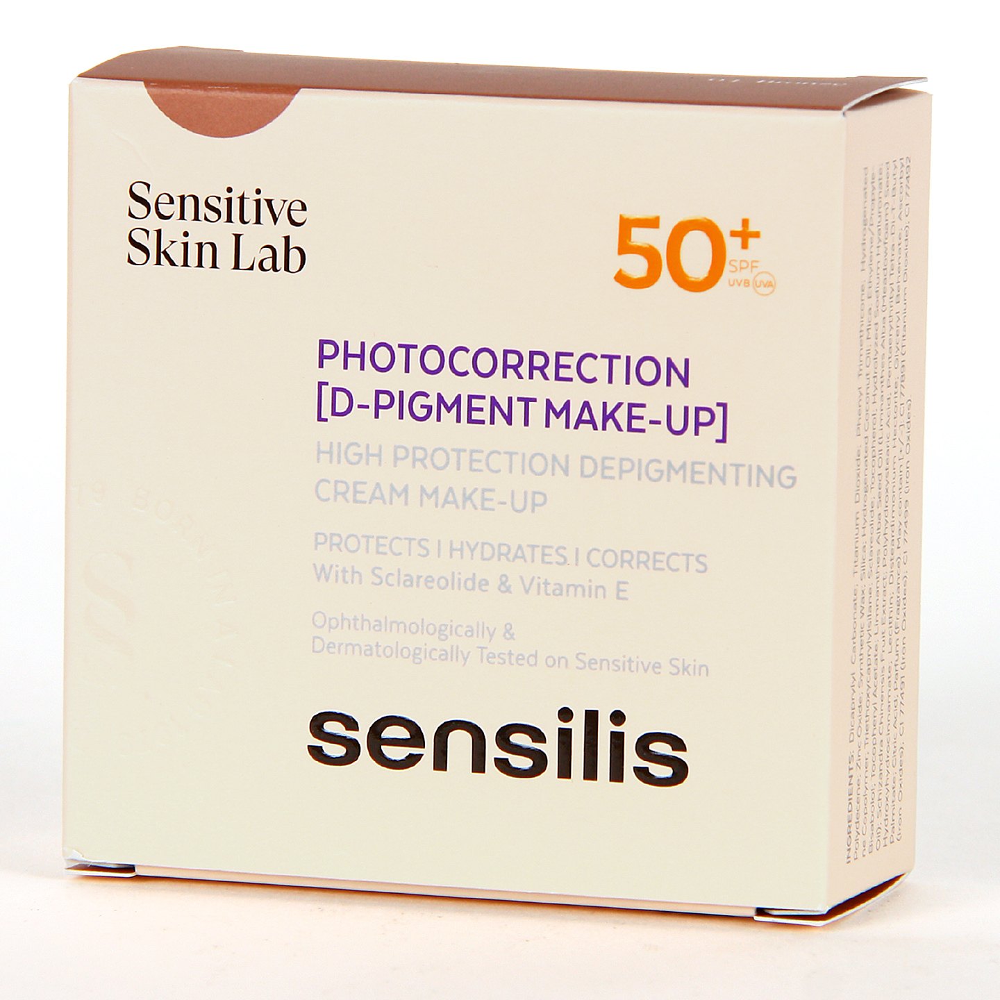 Sensilis Photocorrection Maquillaje Compacto SPF 50+ Tono 03 Bronze es un maquillaje compacto de muy alta protección para pieles sensibles. Su combinación de Vitamina E y Ácido Hialurónico lo hace un tratamiento antiedad, antioxidante y súper hidratante para una piel rejuvenecida y jugosa. Además, disimula las imperfecciones cutáneas como marquitas, granitos, cicatrices o vitíligo aportando un bronceado intenso con un agradable perfume. Resistente al agua y sin efecto máscara.
