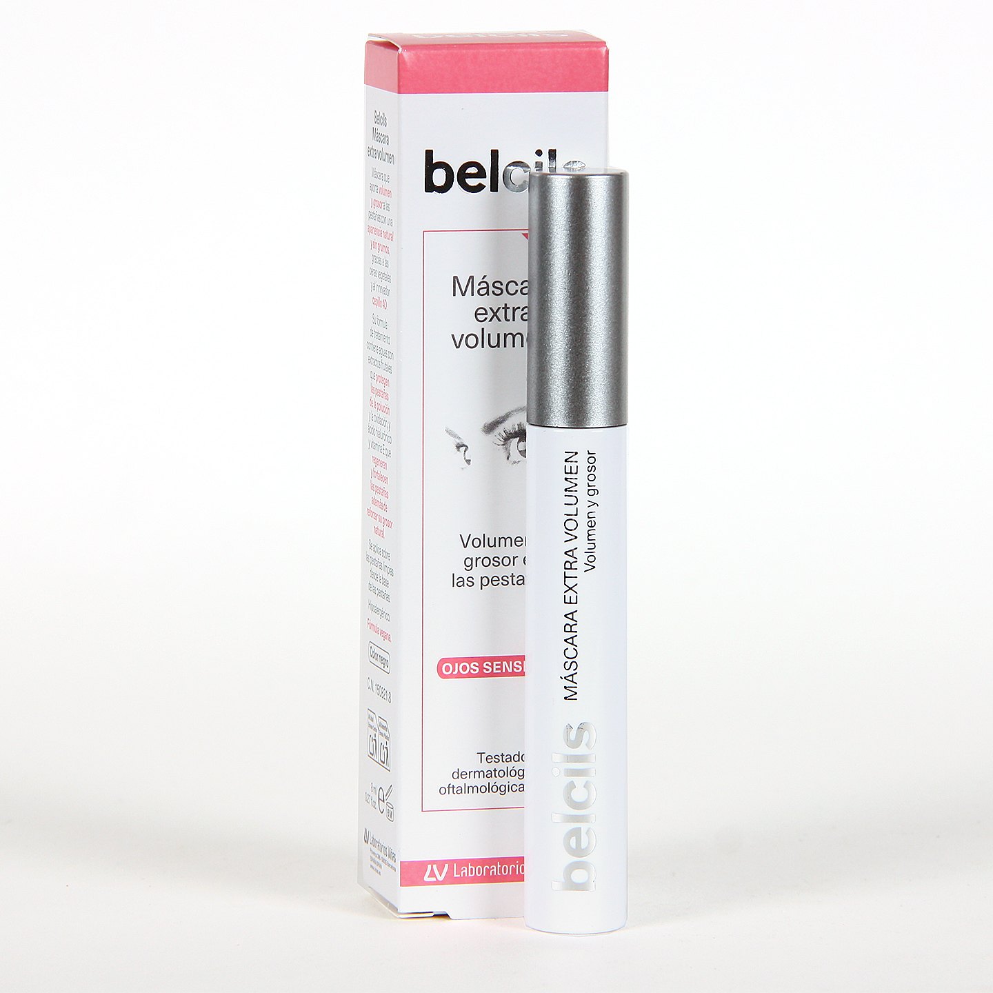 Belcils Máscara Extra Volumen es una máscara diseñada incluso para los ojos sensibles, aporta volumen y grosor a las pestañas dejando un acabado natural y sin apelmazar. Su fórmula contiene ceras de arroz y carnauba que dan volumen y longitud a las pestañas, agua de frutas que protege frente la polución y pantenol y vitamina E que protegen el color. El innovador cepillo 4D aporta un efecto volumen completo y facilita su aplicación.