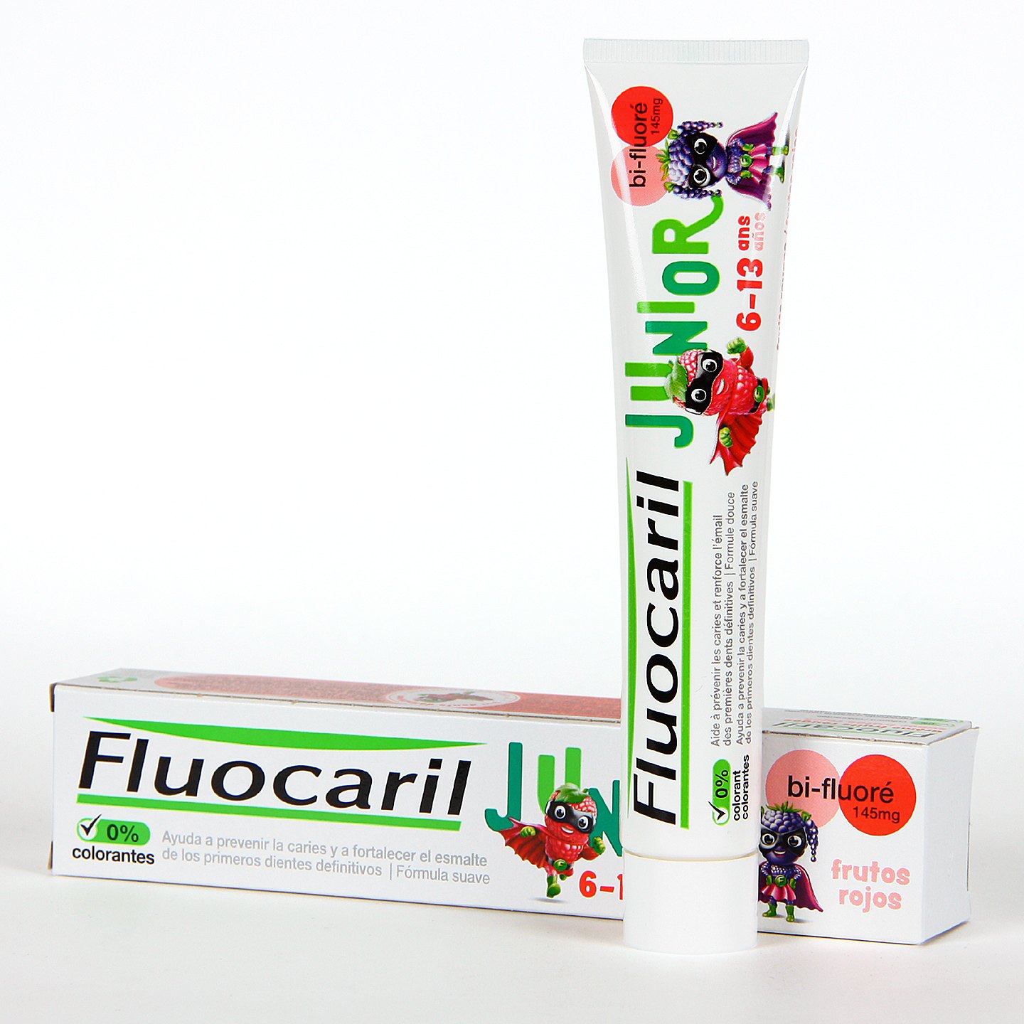 Fluocaril Junior Pasta Dentífrica Frutos Rojos es un cuidado diario para la higiene bucodental de niños, desde los 6 hasta los 12 años, indicada para evitar la aparición de caries y ayudar al fortalecimiento de los dientes definitivos, gracias a su alto contenido en flúor. Además, ofrece un agradable sabor a frutos rojos para un aliento fresco y afrutado.