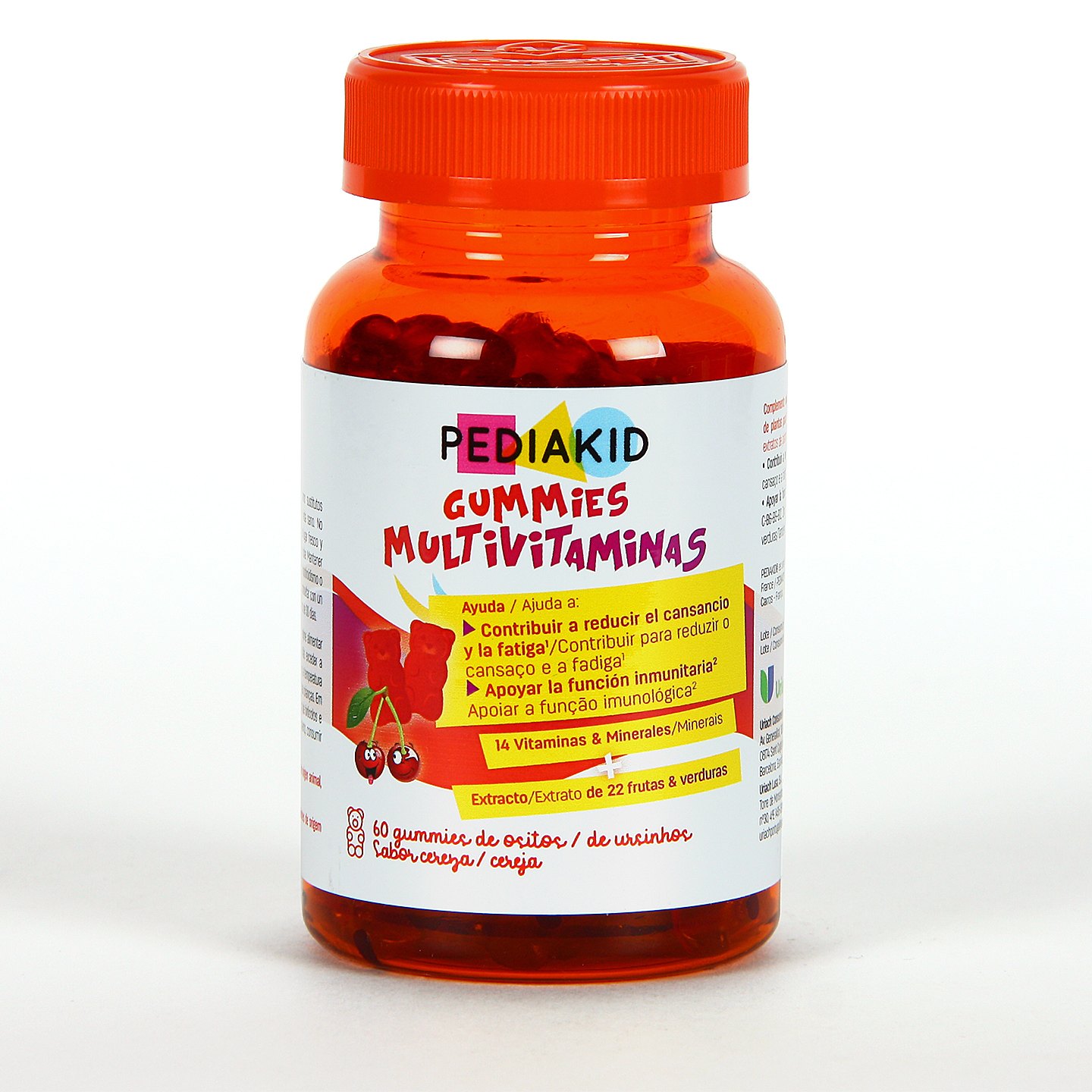 Pediakid Gummies Multivitaminas 60 gummies de ositos es un complemento alimenticio a base de vitaminas, minerales y extractos de plantas diseñado para contribuir a disminuir el cansancio y apoyar la función inmunitaria en los niños a partir de los tres años de edad. Delicioso sabor a cereza que facilita la toma.