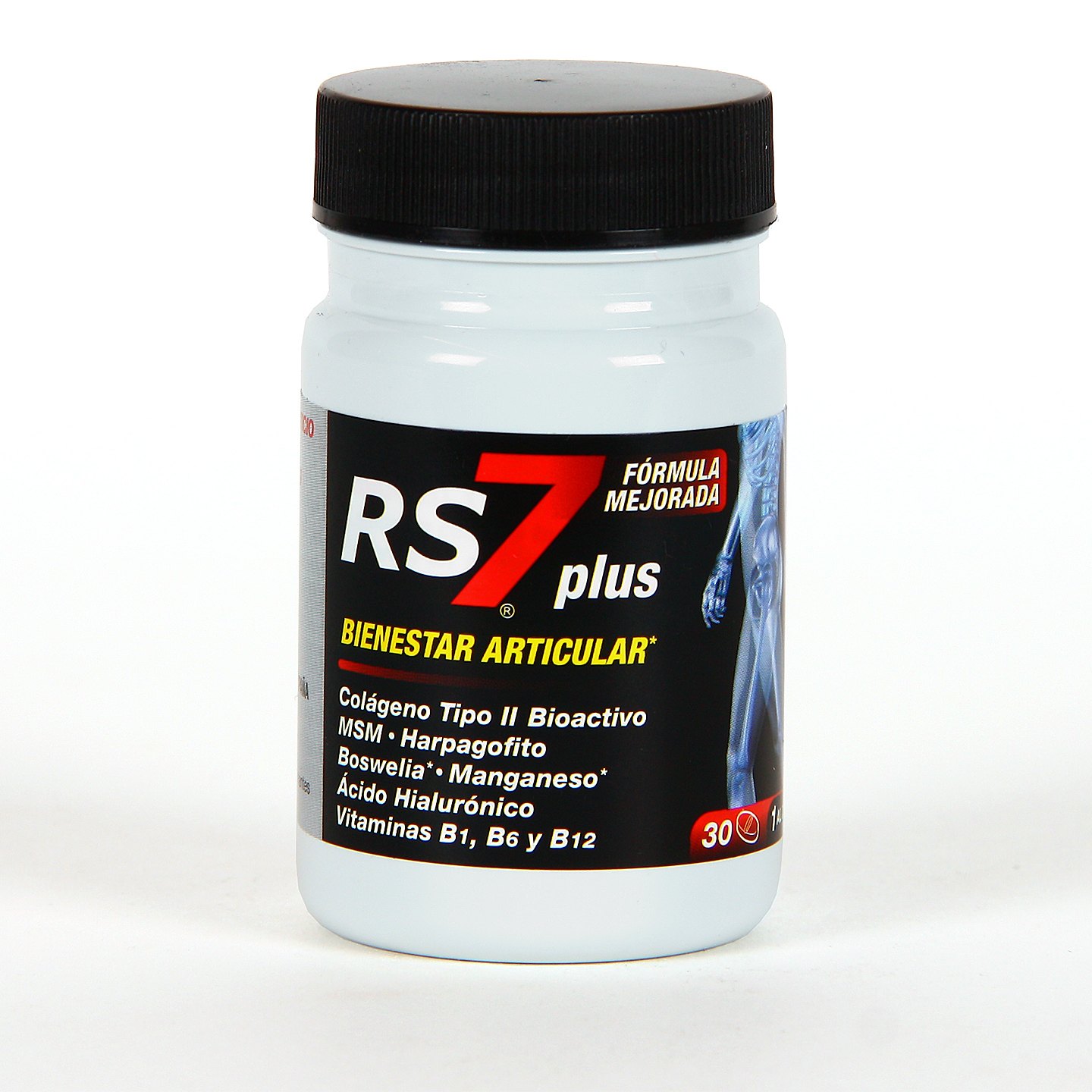 RS7 Articulaciones cápsulas es un complemento nutricional, rico en colágeno tipo II Bioactivo, MSM, Harpagofito, Boswelia, Manganeso, Ácido Hialurónico, Vitamina B1, B6 y B12, indicado para combatir las molestias de las articulaciones con una fórmula 100% natural. Favorece la movilidad y flexibilidad de las articulaciones, con su acción regeneradora y evitando por tanto su desgaste.