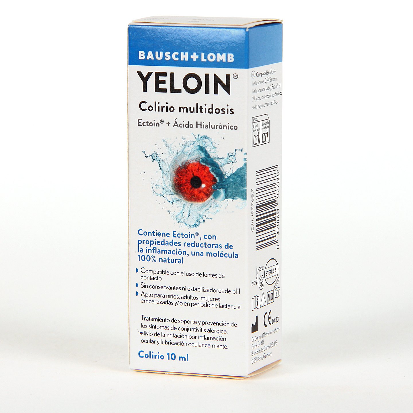 Yeloin Multidosis Colirio es un cuidado ocular, con Ectoin, ácido hialurónico y sin conservantes, que reduce la inflamación en la conjuntiva que ocasiona la sequedad ocular, así como por conjuntivitis y factores irritantes. Yeloin colirio calma y alivia el malestar de ojos irritados, lubricando e hidratando de manera inmediata y duradera.