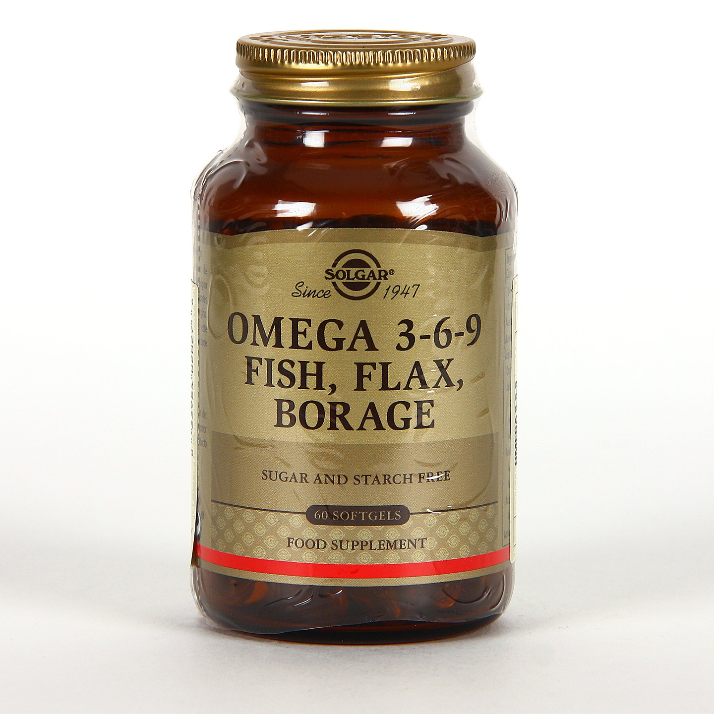 Solgar Omega 3-6-9 Softgels es un complemento alimenticio que combina tres aceites de primera calidad (pescado, lino y borraja) para obtener ácidos grasos omega 3, omega 6 y omega 9 que intervienen en la regulación de multitud de procesos biológicos. Contribuye al funcionamiento normal del corazón, cerebro y al mantenimiento de la visión en condiciones normales.