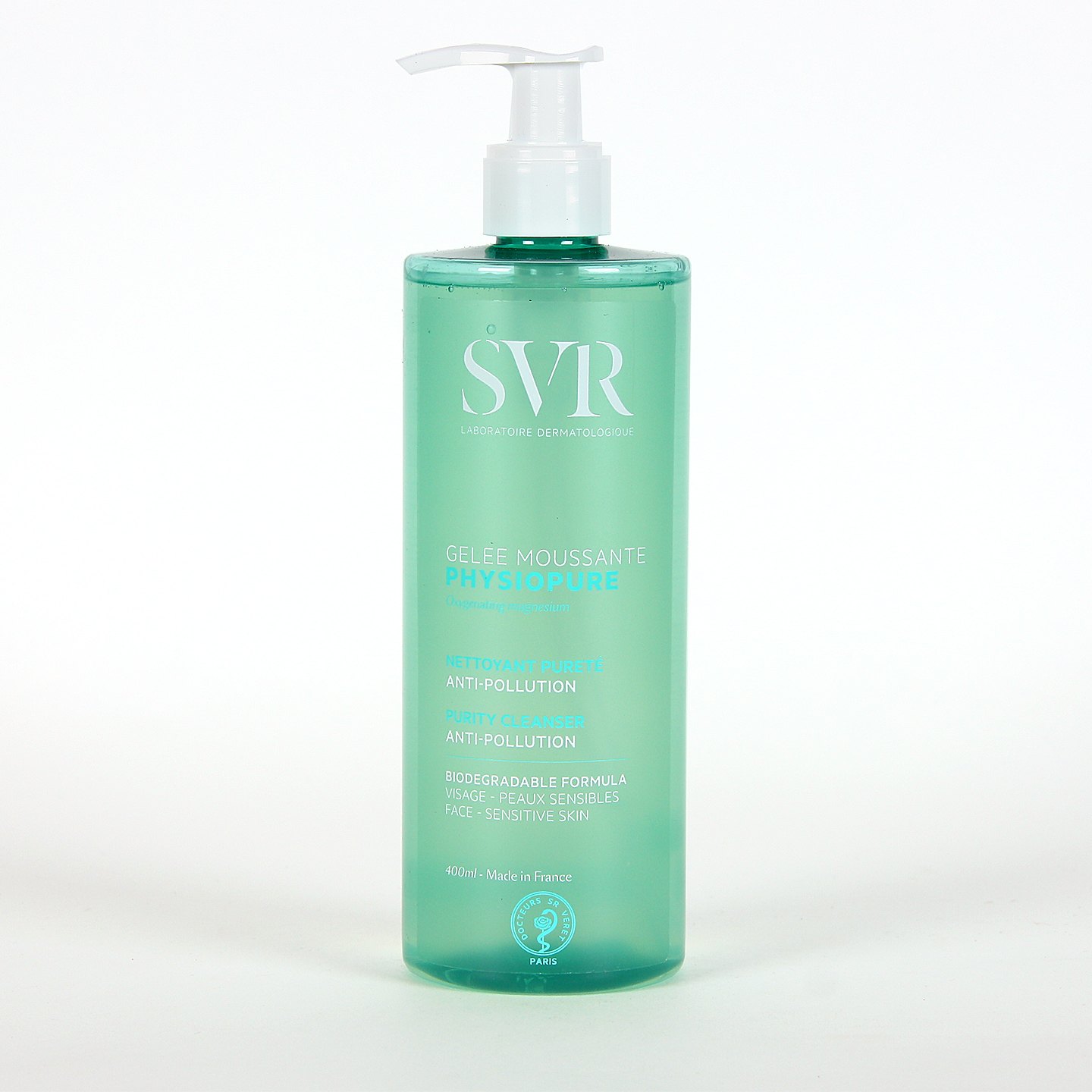 SVR Physiopure Gel Moussante es un cuidado de higiene que purifica y aporta suavidad. Su exclusivo complejo hidratante aporta confort y evita la tirantez tras la limpieza. Este gel de limpieza facial está indicado para todo tipo de pieles, incluidas los rostros sensibles y reactivos. Con una textura ligera en gel, que se transforma en espuma, además de ofrecer una experiencia sensorial, elimina todas las impurezas, contaminación, restos de maquillaje, incluso waterproof para un rostro limpio, purificado y con sensación de frescor.