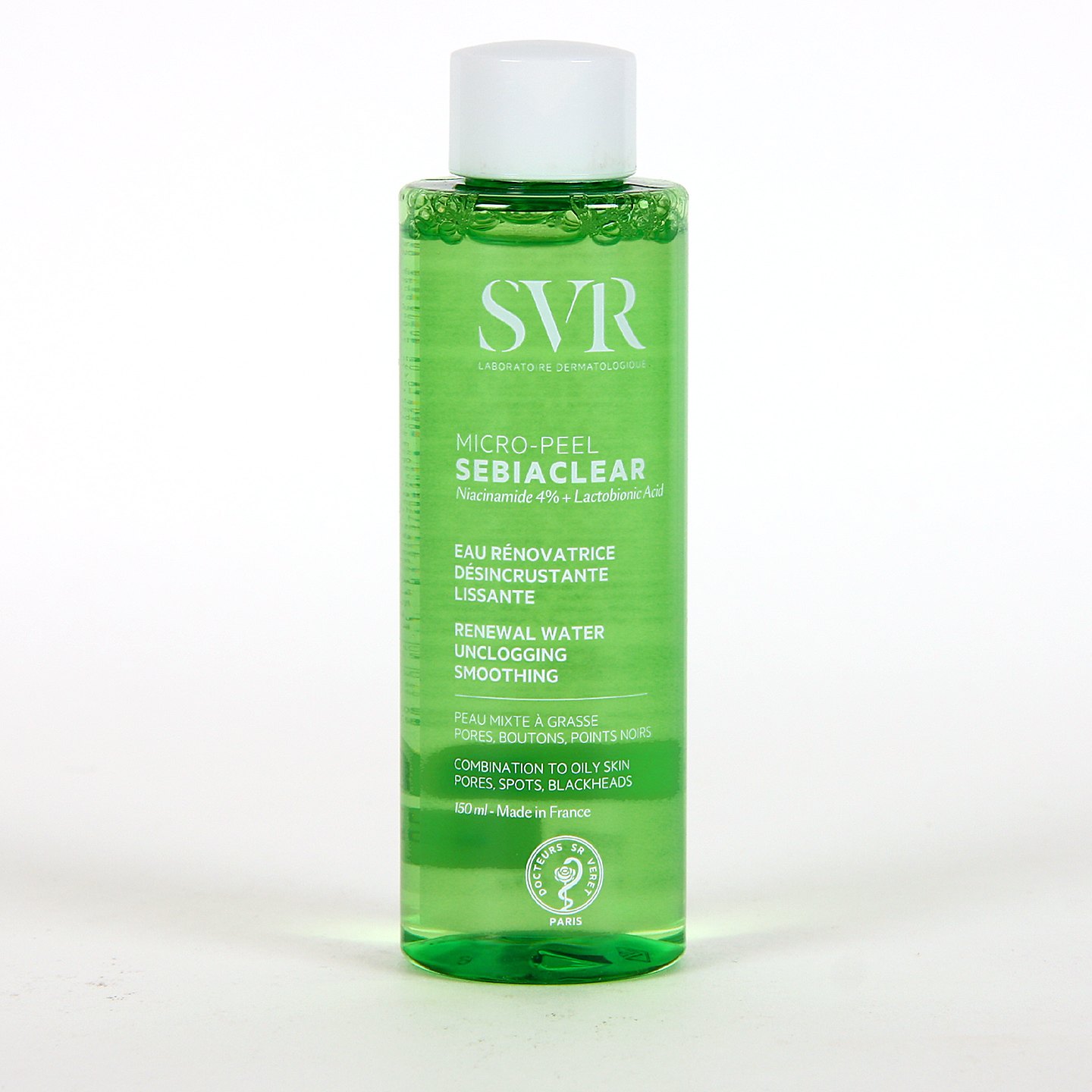 SVR Sebiaclear Micro Peel es un agua dermatológica activa anti-imperfecciones que reduce las imperfecciones y marcas de pieles mixtas/grasas con tendencia acnéica. Gracias a su potente combinación de ácido salicílico y ácido lactobiónico, renueva y suaviza la textura de la piel. Además, su contenido en niacinamida y zinc calma y purifica la piel a la vez que regula el exceso de sebo de forma inmediata.
